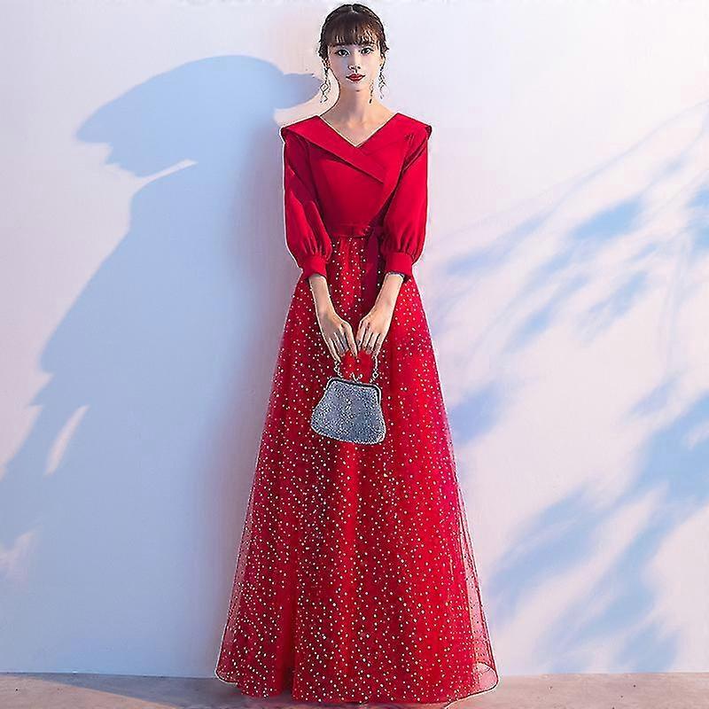 Boutiquetoast Dress Bride 2022 New Autumn Sequins Red Belly Wedding Engagement Evening Dress Long Return Dress