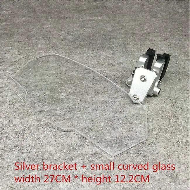 Motorcycle windshield windshield protection device Features and specifications: Motorcycle adjustable windshield, fixed above the original windshield, to improve the safety of the knight. Anodizing - To prevent corrosion, stainless steel screws - Long service life. Aluminum 6061 T6 billet aluminum The project is easy to install, no instructions will be suitable compatible forvarious types of locomotives. Windshield color: transparent CNC aluminum block color: titanium, silver Size: Small angular glass: about 27.7 cm wide x 12.2 cm high (thickness: 4 mm) Small curved glass: about 27.7 cm wide by 12.2 cm high (thickness: 4 mm) Large curved glass: about 30.0 cm wide 13.5 cm high (thickness: 4 mm) Decoration: compatible forSuzuki KTM Aprilia Band Windshield Model Universal Effect map (color in kind): 1. Most of our deals are promoted with free
