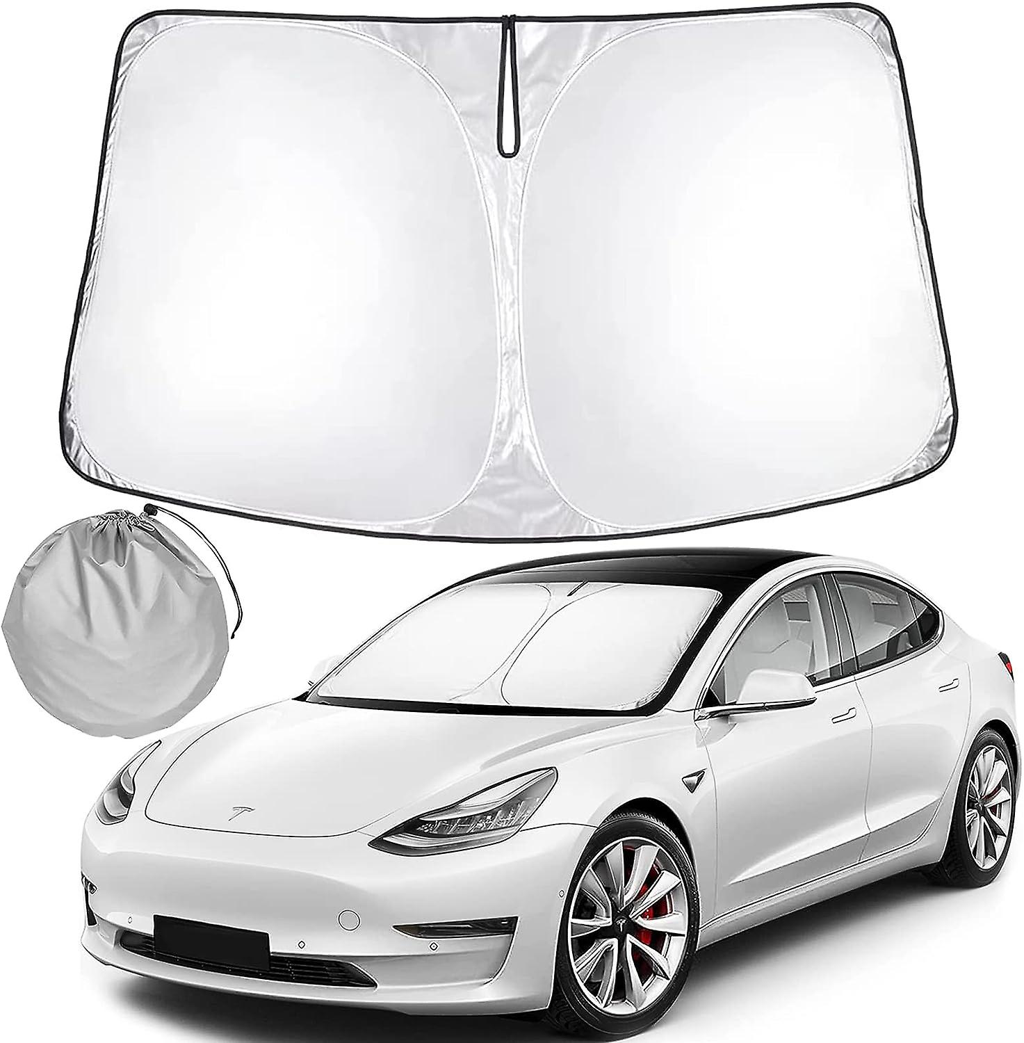 Sunshade Designed For Tesla Model 3 Exclusively, Front Windshield, Double Layer Light Blocking Fabric, Foldable Sun Shade With A Storage Bag, Niuniu