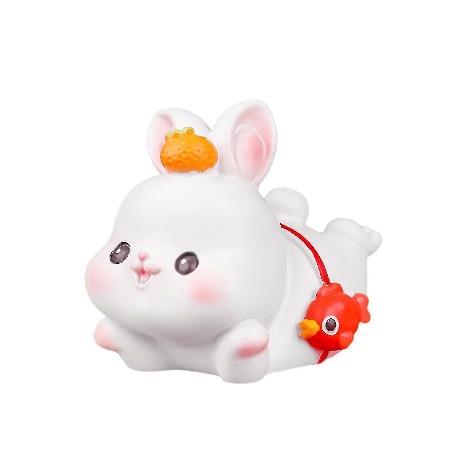 New Year Lucky White Resin Bunny Rabbit Ornament Figure Decoration Cartoon Crafts-26-1