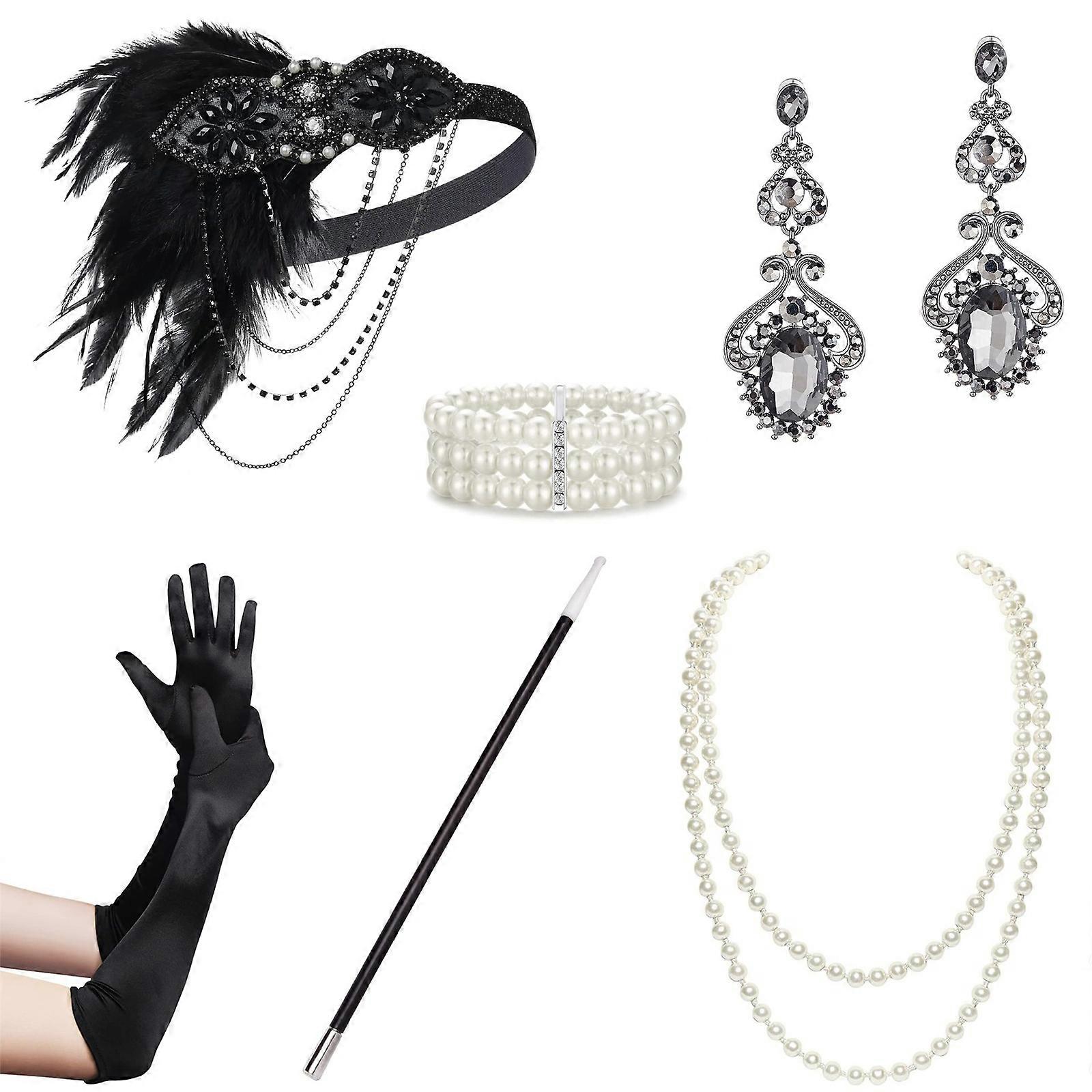 1920s Flapper GatsbyParty Costume Accessories for Women Vintage Rhinestones Headpiece Dangling Earring Makeup Party Wear 7