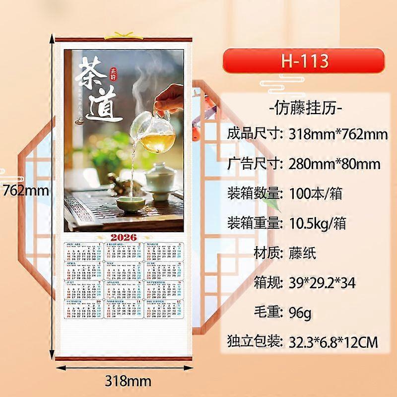 Horse Year 2026 Faux Rattan Hanging Scroll Calendar Traditional Chinese New Year Wall Calendar For Living Room