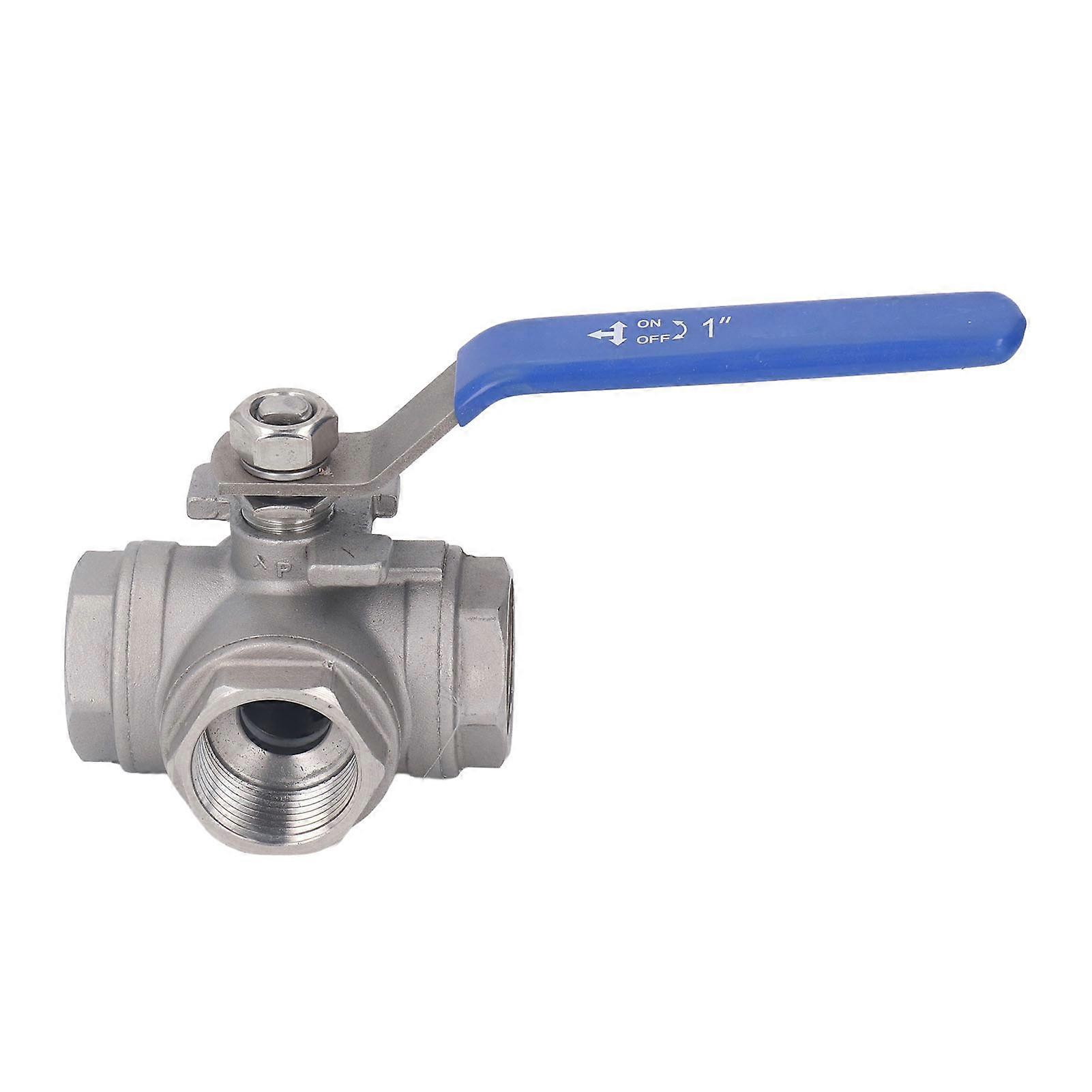3-Way Ball Valve, 1" T Type Ball Valve Stainless Steel Female 3 Way Valve Manual Drive for Water Oil Gas