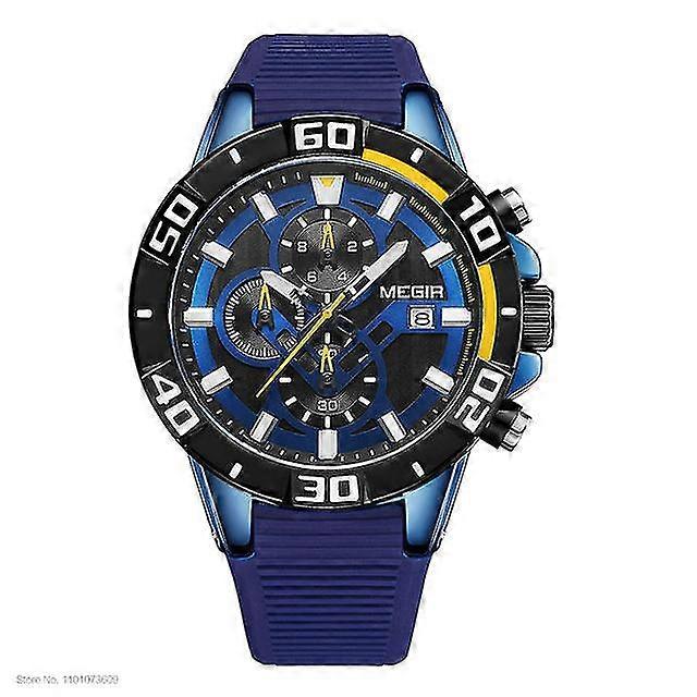 Luxury Blue Watch Men Top Brand Silicone Bracelet Sport Chronograph...