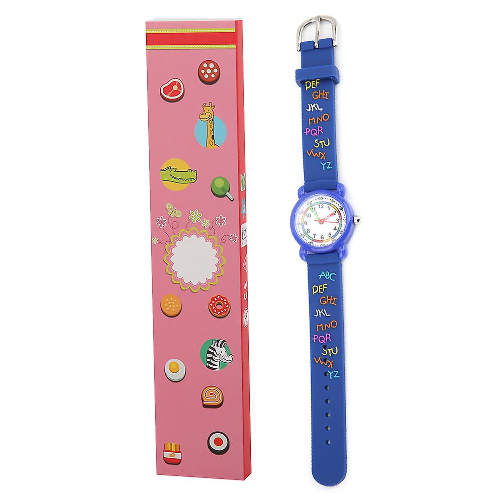 Kids Waterproof Cartoon Wrist Watch with Letter Pattern Blue, Time Recognition Tool for Children Durable and Easy to Read