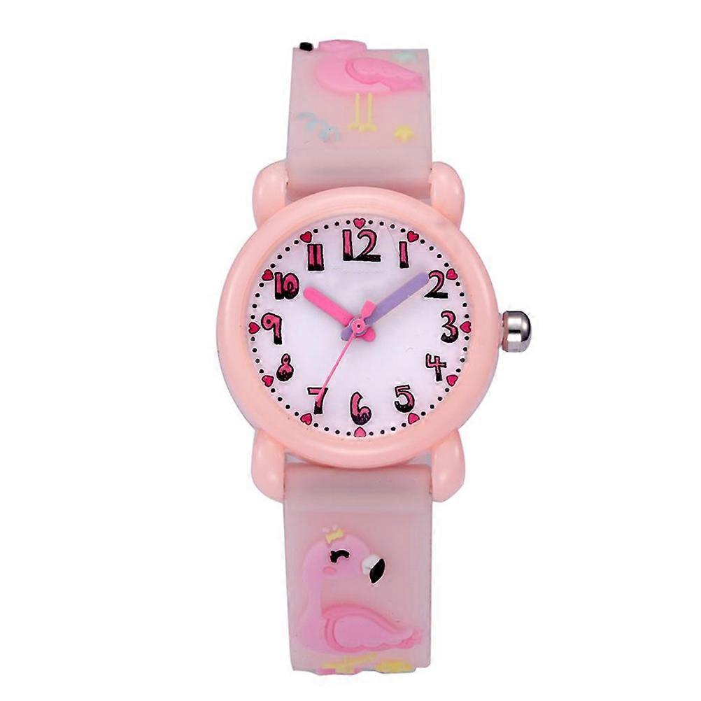 Childs Watch Girl Flamingo Pattern Circular Wristwatch Outdoor Activities Pc Stainless Steel Waterproof 1Pcs