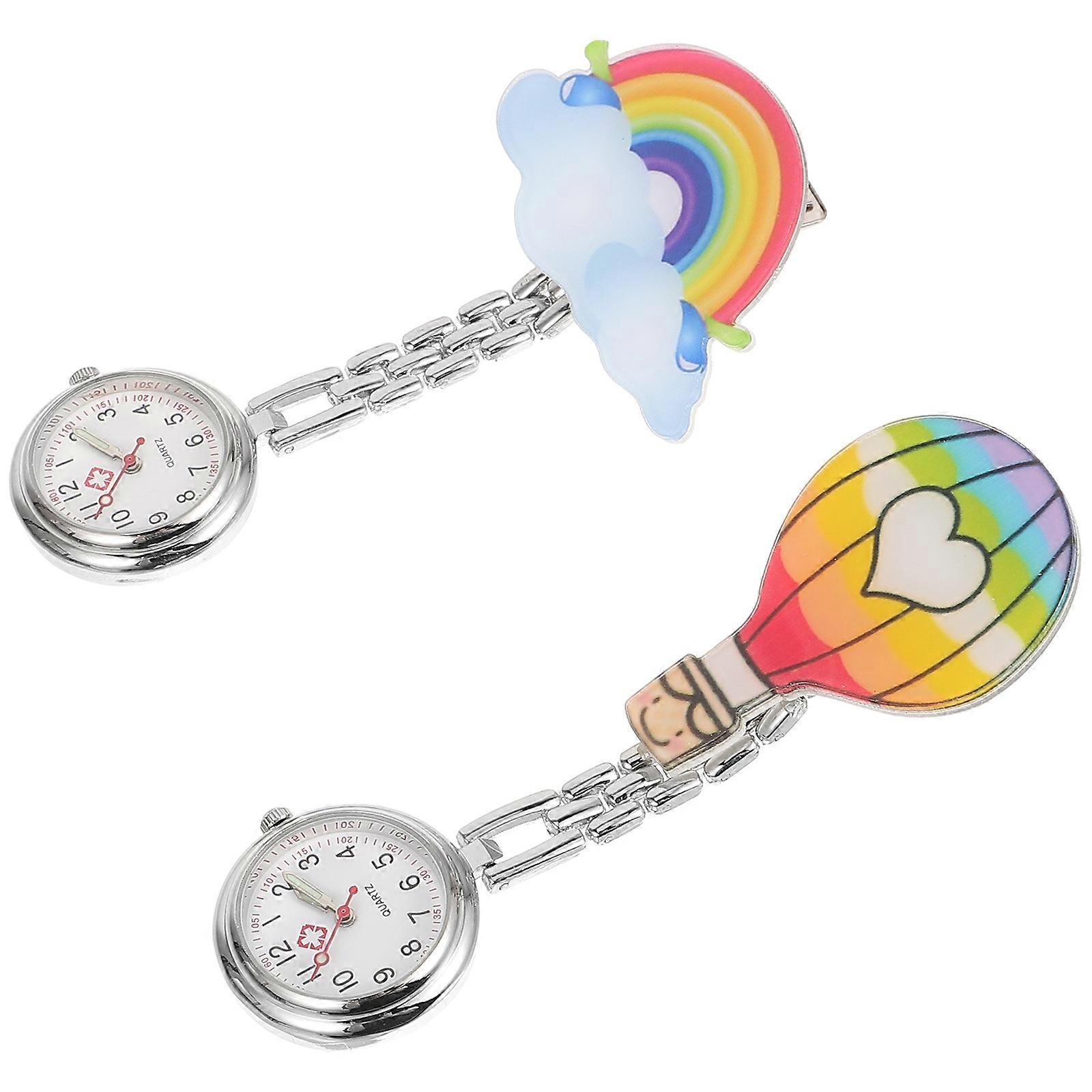 This Nurse Watch is made from stable materials, supporting a longer use time. Nurse Watch is lightweight and suitable size, convenient for you to carry it to any different places. Nurse Watch is also a nice decor for your dressing style. With simple and delicate shape, this pocket watch is an impressive gift for a friend who works in the hospital. Features -Color:Assorted Color -Material:Plastic, Metal -Size(balloon):10.00X3.10X2.00cm/3.93X1.22X0.79in -Size(Rainbow):9.30X4.90X2.00cm/3.65X1.93X0.79in -This pocket watch is made from stable materials, durable, supports long-term use. - workmanship and shape make the smooth, can use it rest assured. -With simple appearance, this watch will bring you a satisfying using experience and show your fashion taste. - or your family and friends such a portable and unique watch as a gift, especially medical workers. -Clip designed watch with precise time can be better service for you, offers much convenience to watch the time. Package list: 2 x Nurse Watch