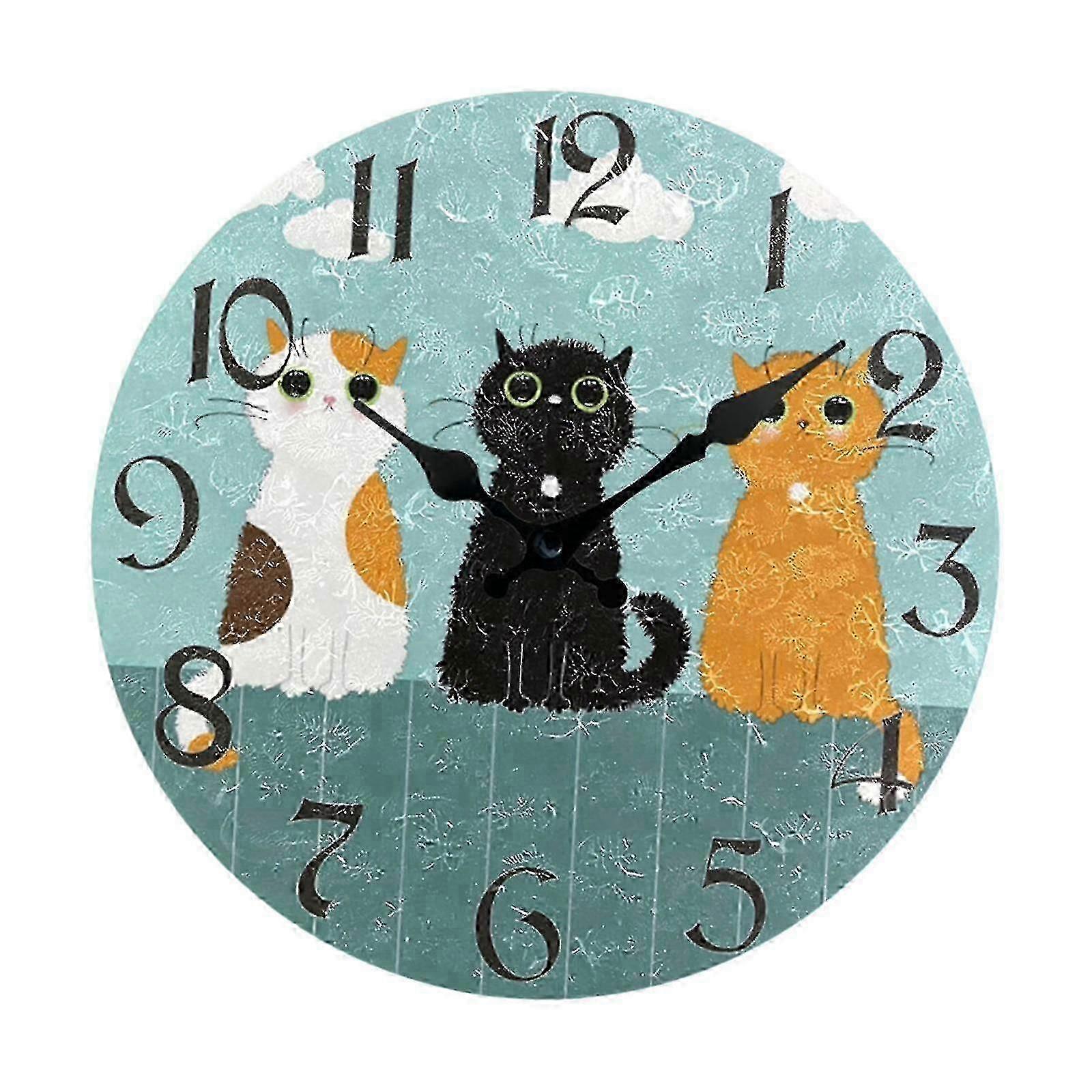 Rustic Silent Wall Clock for Bedroom and Living Room Style A with Humorous Cat Design