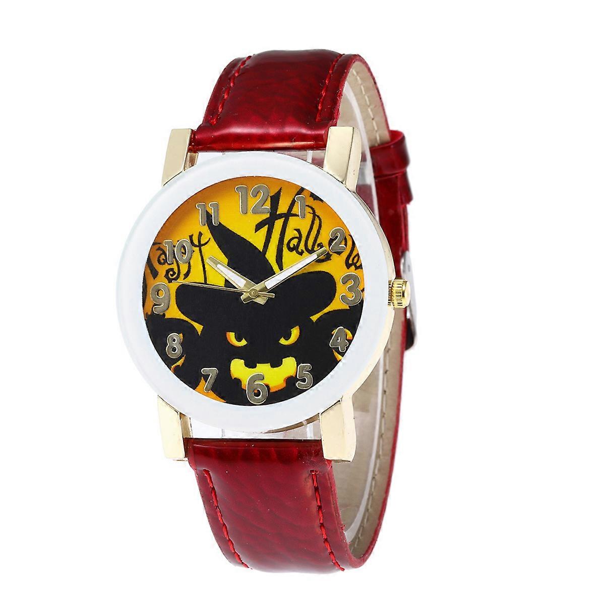 Strap Watches Women Halloween Theme Pumpkin Lantern Pattern Quartz Wrist Watch Cosplay Party .3 1.5 0.2in 1Pack