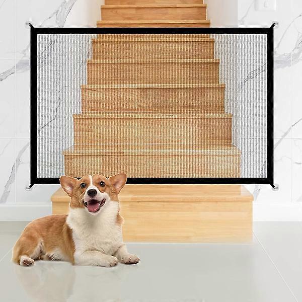 Mesh Dog Gate for Stairs Retractable dog gates are suitable for most pets, such as dogs and cats, providing a safe barrier for your pets to play and rest with family members, protecting them from potentially hazardous areas and helping them develop good habits quickly. Foldable Safety Gate for Pets and Children This foldable safety gate is not only a pet isolation gate but also a child safety gate, creating a safe space for your dog or child while playing and resting. You can enjoy your time without interruption, clearly monitoring everything through the mesh. Size With a 72cm height and 180cm width, this pet safety gate fits most standard doorways. It's perfect for doorways, between walls, or stairwells, indoors and outdoors. (Please measure your doorway before purchasing). Each set includes 1 pet gate, 2 extendable rods, and 4 adhesive hooks. Easy Storage This mesh pet gate is designed for convenience, taking up minimal space and easily folding for portability and storage; ideal for keeping your dog away from doors or stairs without worrying about sudden intrusions or interruptions. Easy Installation Insert two rods into the tunnels on both sides, attach the hooks, press firmly for 5-8 seconds, and wait 24 hours before hanging the mesh. This makes the hook stickier. No tools are needed, and there's no damage. The gate can be easily retracted fully or partially when needed. Product Name: Magic Dog Gate Material: Nylon Color: Black Quantity: 1 Piece Uses: Interior, Kitchen, Living Room, Stairs, Balcony, Bedroom Package Includes: 1 x Pet Safety Gate, 4 x Plastic Hooks, 2 x Telescopic Rods