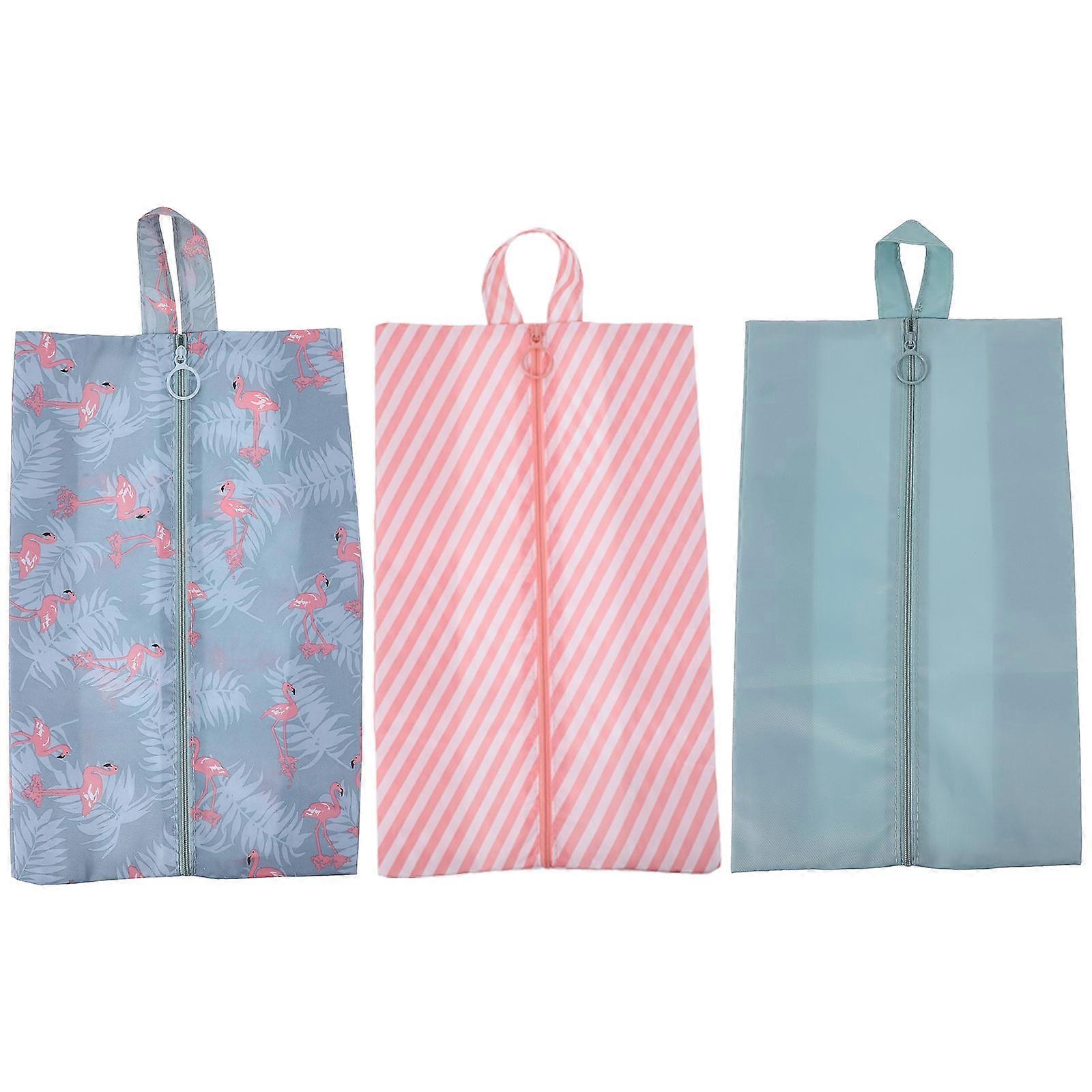 Shoe Storage Bags Waterproof Travel Portable Shoe Bags Gray Flamingo 36x21cm For Outdoor Activities 3Pcs