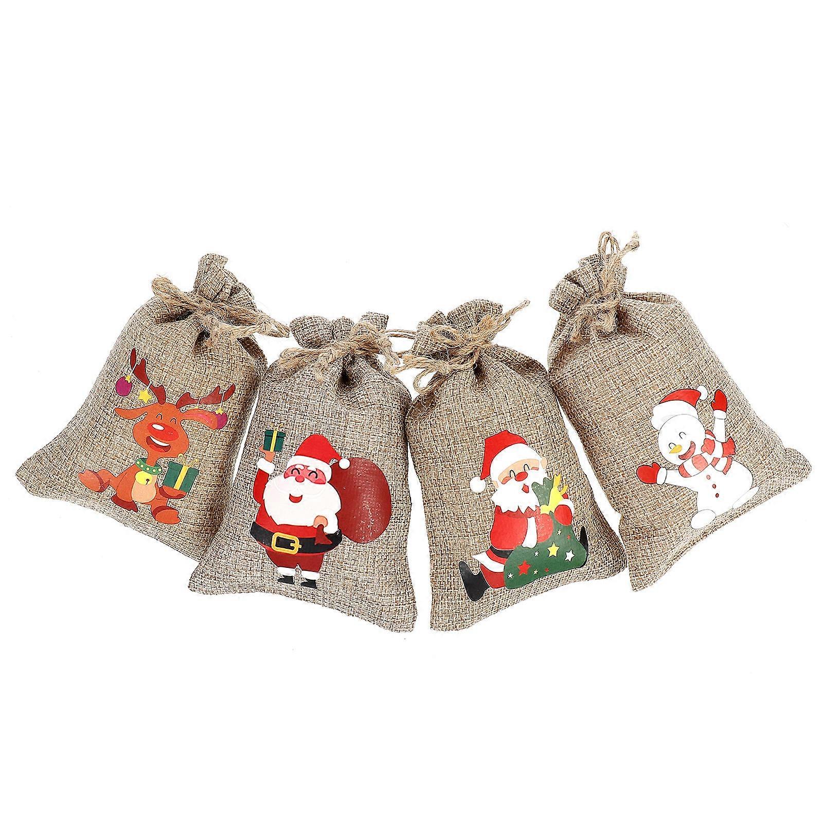 Goodie Candy Bags Family Children Rectangular Linen Drawstring Storage Holder For Christmas 24Pcs