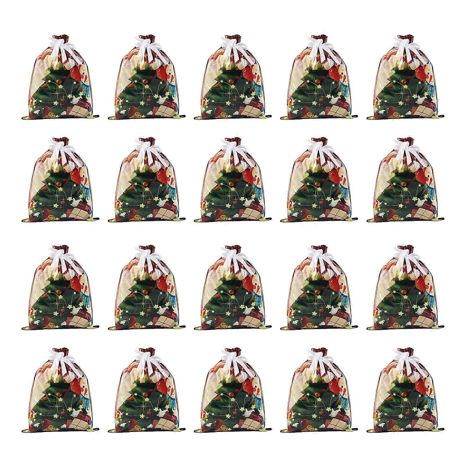 Reusable Christmas Drawstring Gift Bags Plastic Holiday Party Favor Pouches for Candy Treats Storage Christmas Tree