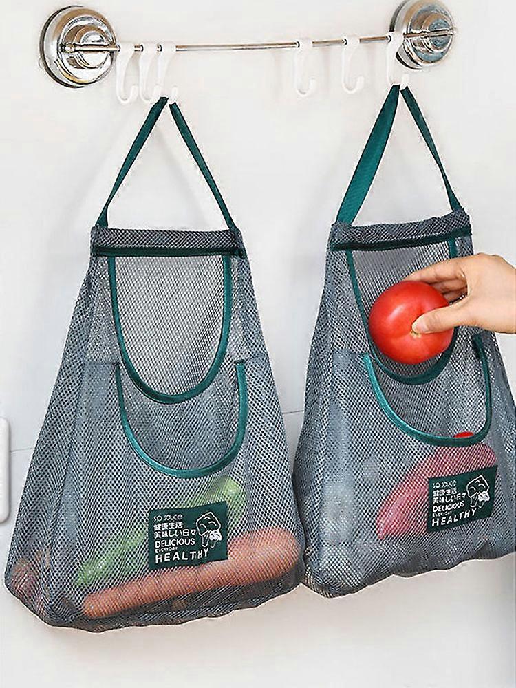 Reusable Hanging Bags for Kitchen Supplies and Shopping, Double Layer, 2-Pack, Wall Mounted Fruit and Vegetable Storage