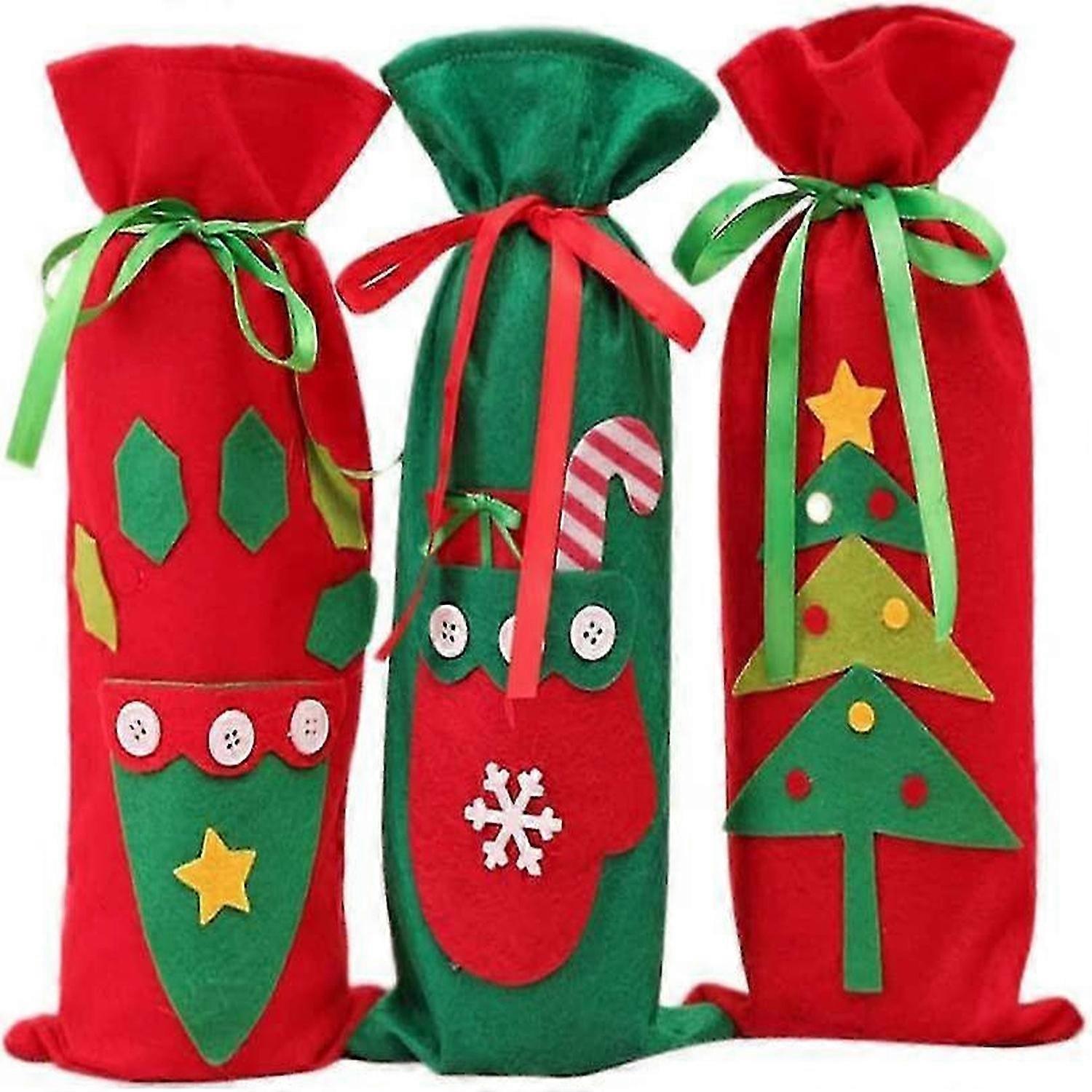 Christmas wine bottle bag Wine gift beam with bag (red 3PCS)