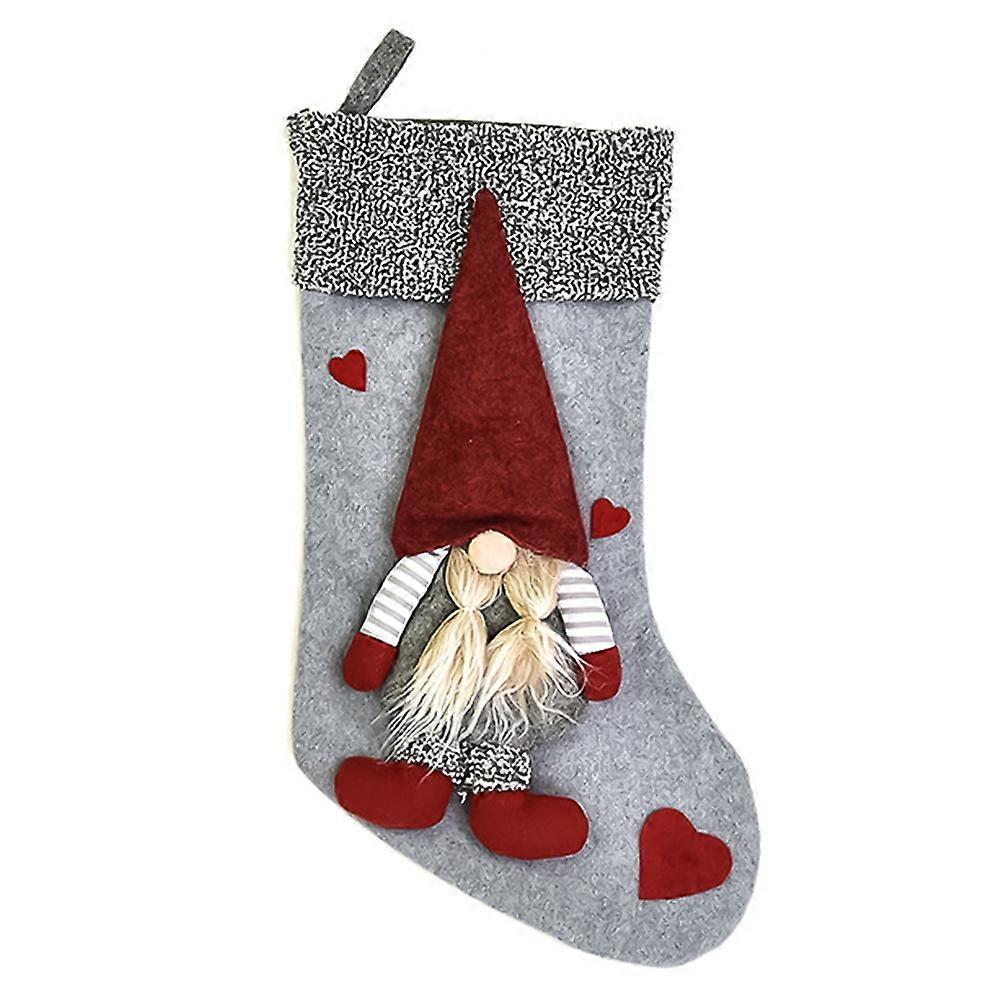 Christmas Gift Bag Stockings Gnome Doll for Storage Use 3Pcs Grey