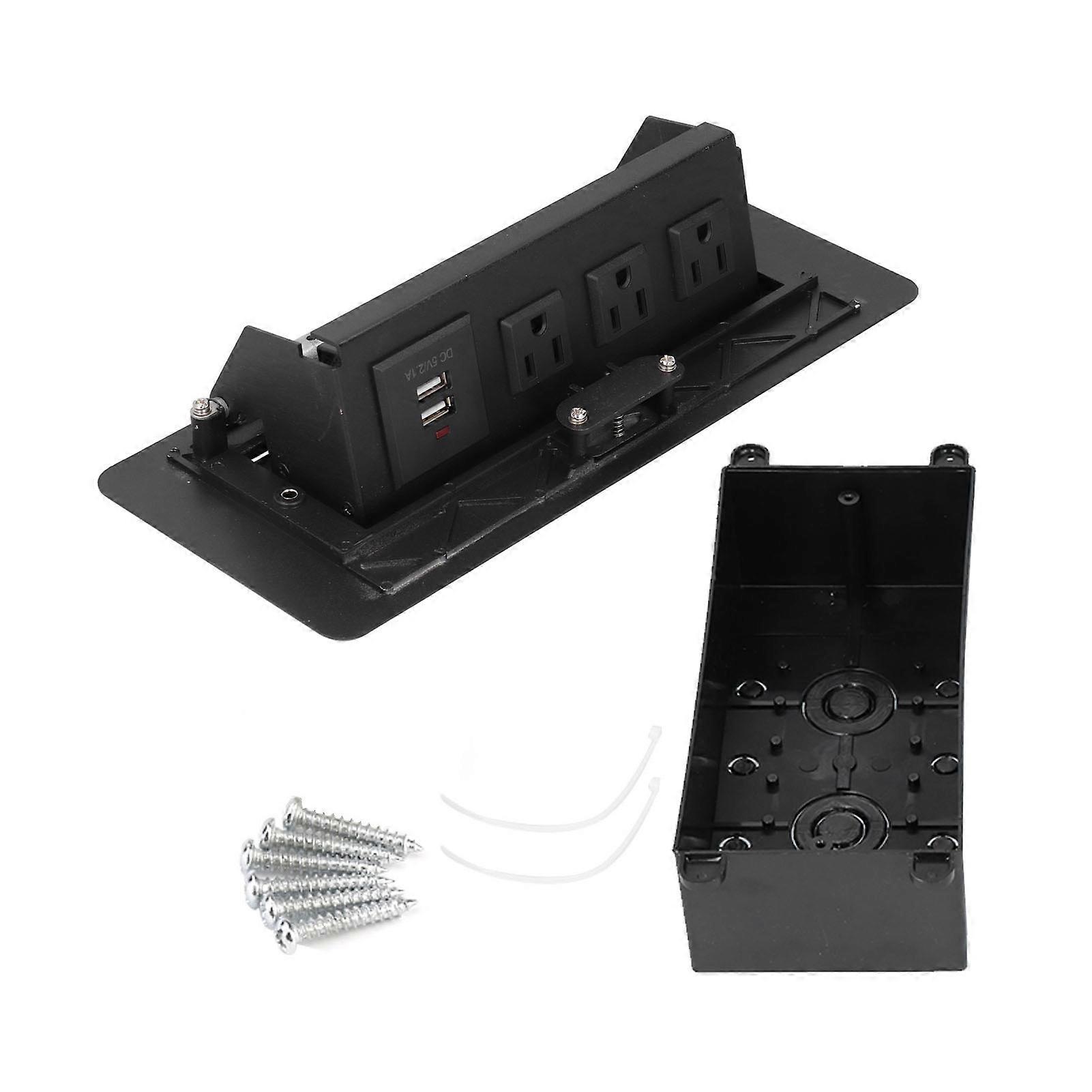 Item Type: Power Socket Material: Aluminum Alloy Rated Voltage: AC125V Rated Current: 10A Color: Black Rated Voltage of USB port: DC5V Rated Current of USB port: 2.1A Package List 1 x Bottom Shell 1 x Socket Panel 2 x Ties 6 x Installation Screw 1. During installation, be careful not to allow water to enter and try to keep the desktop socket dry and clean to avoid potential safety dangers in future use. 2. When installing desktop sockets, make sure to ground them to better ensure safety and service life. 3. When installing desktop sockets, it is important to pay attention to their location and not affect their normal use. It is best to install them in a relatively concealed or infrequently used location. 4. After installing the desktop socket, it is necessary to test it one by one to see if it can be used normally. At the same time, pay attention to taking waterproof measures to avoid affecting future use. 1LONG SERVICE LIFE: Made of premium aluminum alloy material, resistant to high temperatures, non fracture, and strong flexibility. The bottom box is anti drop and leakage proof, and is a professional level socket, never falsely labeled. 2SAFE TO USE: Slow rebound damping opens slowly, making the socket safer and more stable to use. 3WATERPROOF PERFORMANCE: Better waterproof effect, more thoughtful, and enjoy a delicate and beautiful life. 4HOME DECORATION: Suitable for various furniture styles to meet the individual needs of different groups of people. 5IDEAL REPLACEMENT: This socket with fine workmanship and modern design can be easily used, ideal replacement for the old and damaged socket.