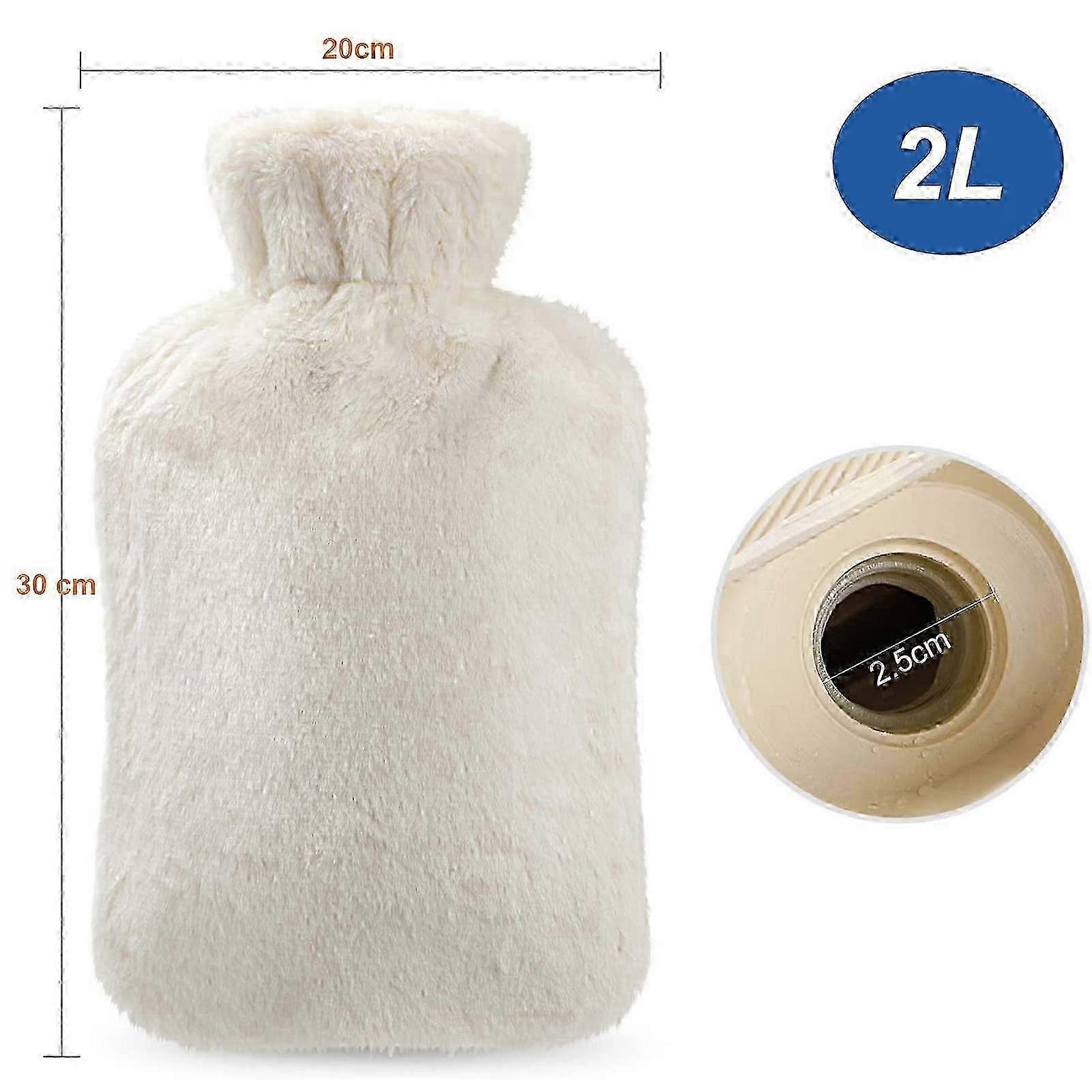 Hot Water Bag with Plush Cover 2L Large Capacity Rubber Hot Water Bottle Hand Feet Warmer for Bed Hot Compress Cold Therapy Shoulder Pain Re