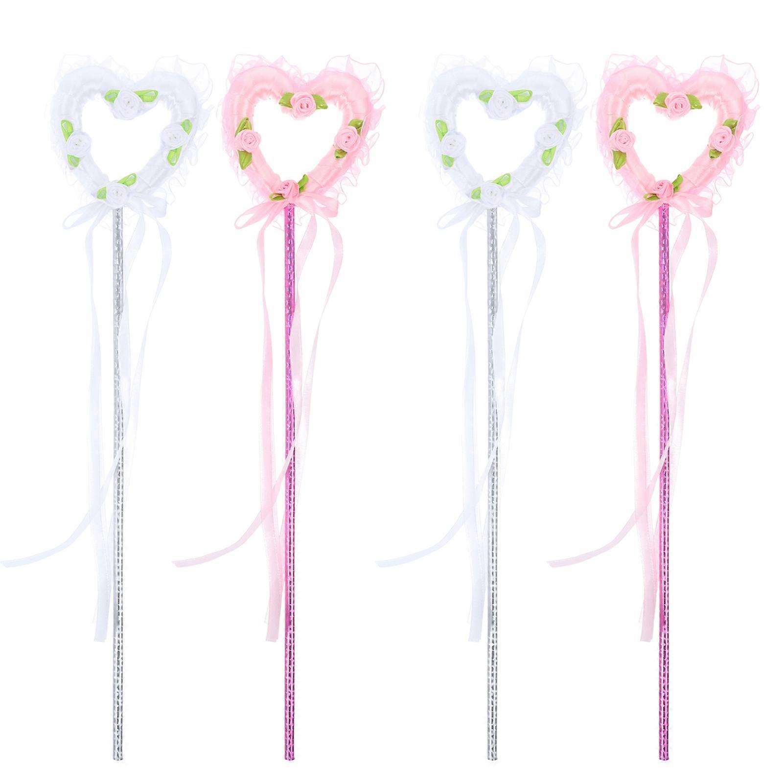 Fairy Wands 4pcs Heart Shaped Decorative Sticks with Ribbon Design for Stage Performance, Dances & Dress Up Games Ideal Fairy Accessories for Kids