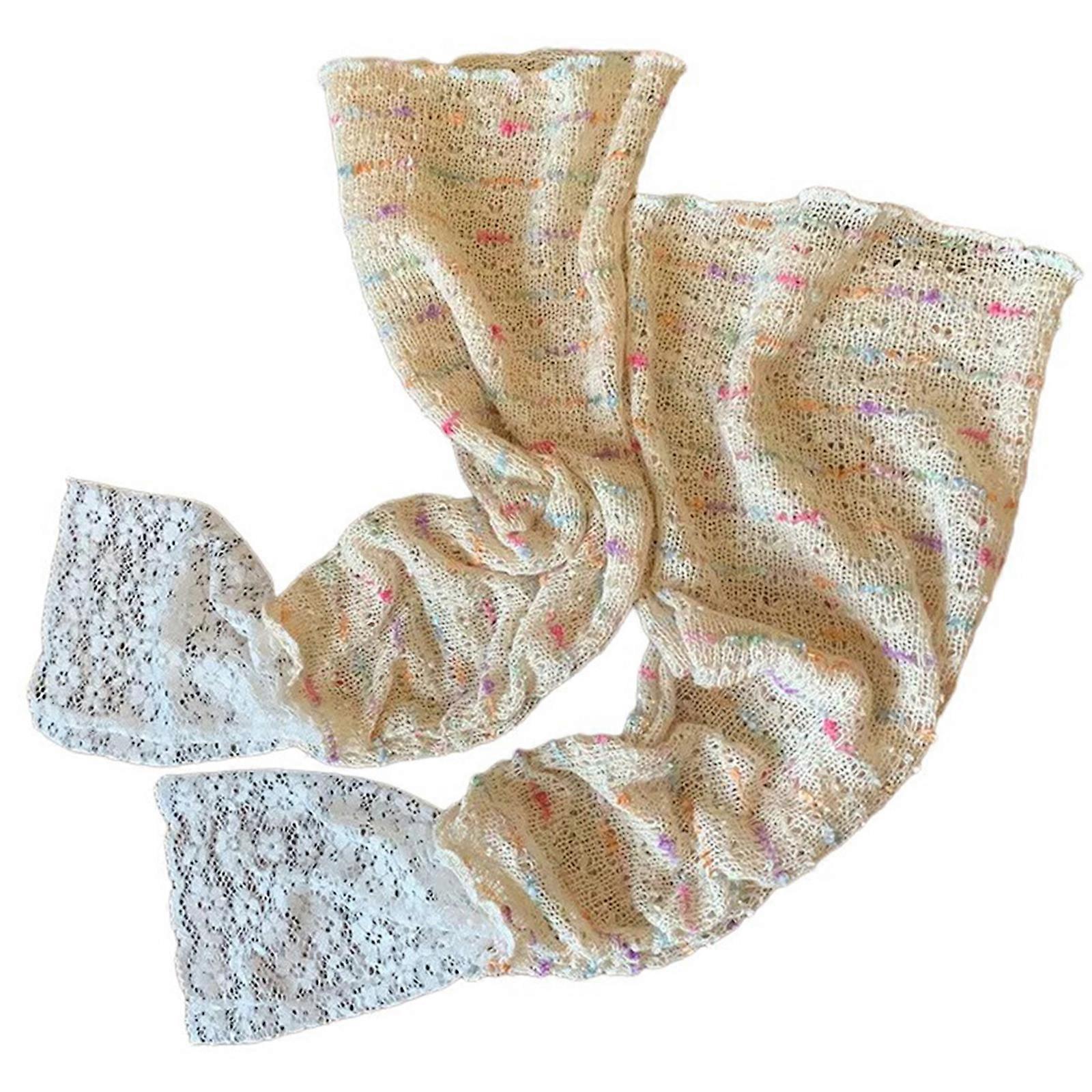Aesthetic Colorful Knit Leg Warmer Sleeve for Women Elegant Floral Lace Patchwork Flared Stretch Leg Cover Calf Socks Khaki