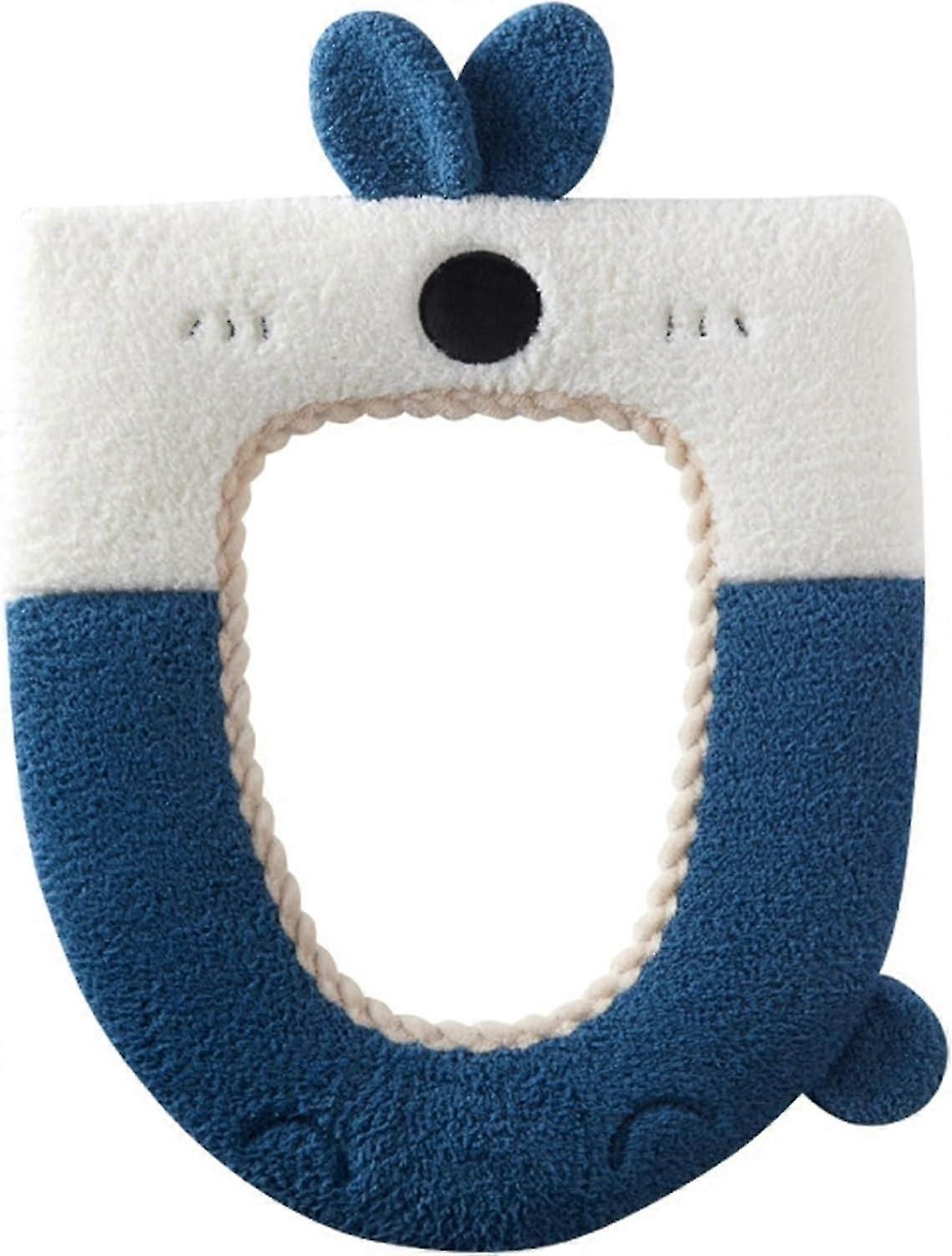 Thickened toilet seat sleeve, soft warming toilet seat cover, bathroom toilet cover, universal (navy blue)