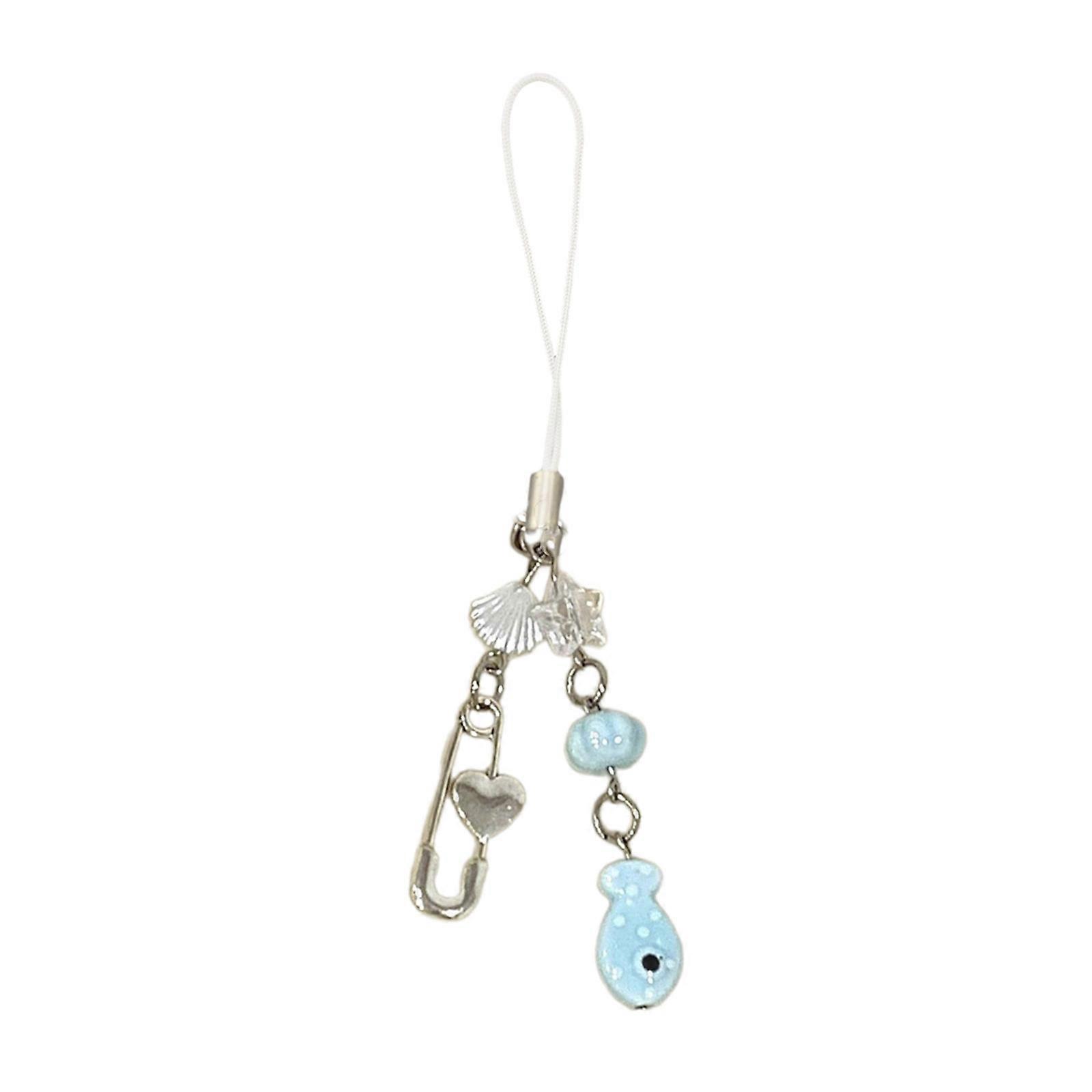 Colorful Phone Lanyard Blue Dots Fish Wrist Strap Handmade Beaded Phone Chain DIY Keychains Backpack Camera Jewelry Multicolor