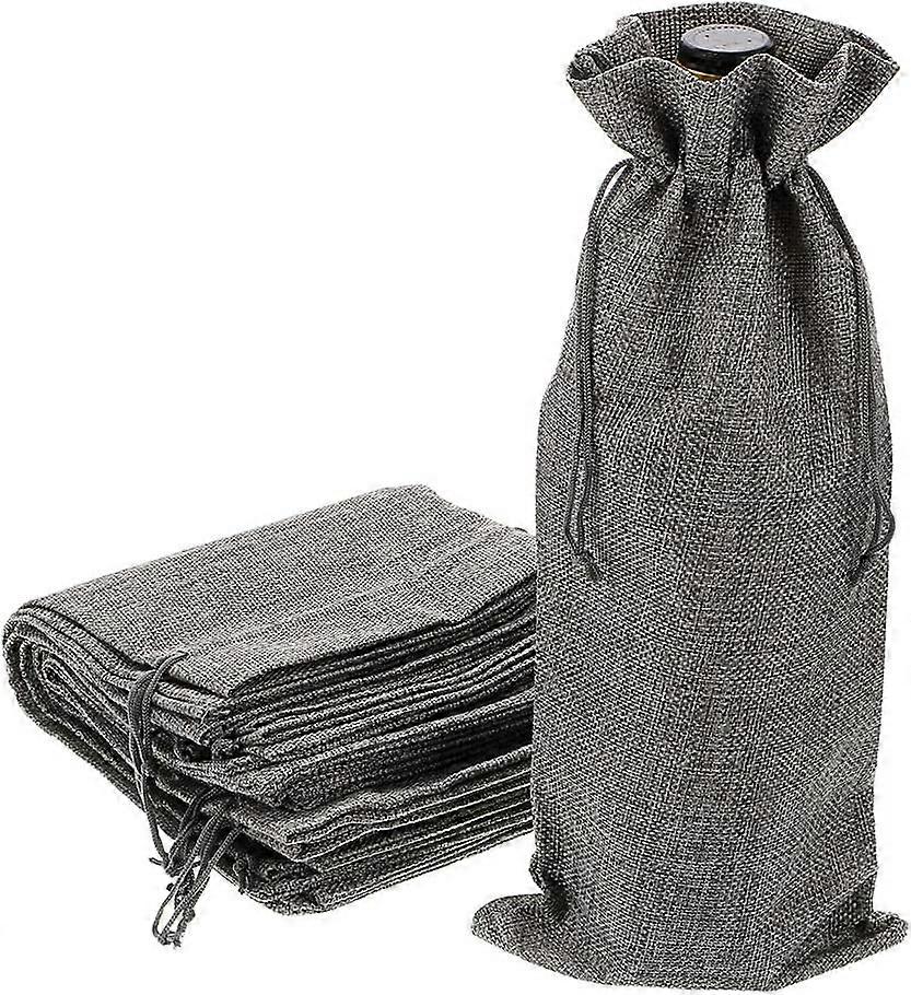 Drawstring hessian red wine gift bag Champagne bottle bag 15X35CM (grey, 12 pack)