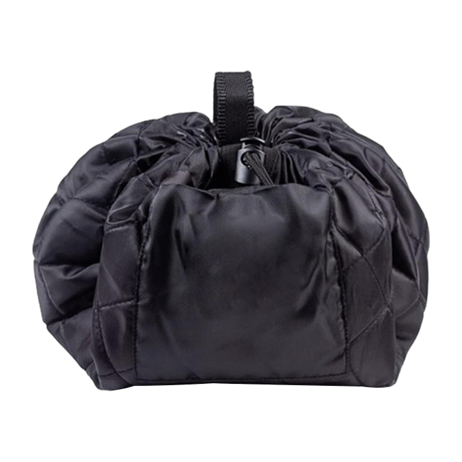 Drawstring Makeup Bag Organizer Makeup Brushes Storage Bag for Daily Use Men Black