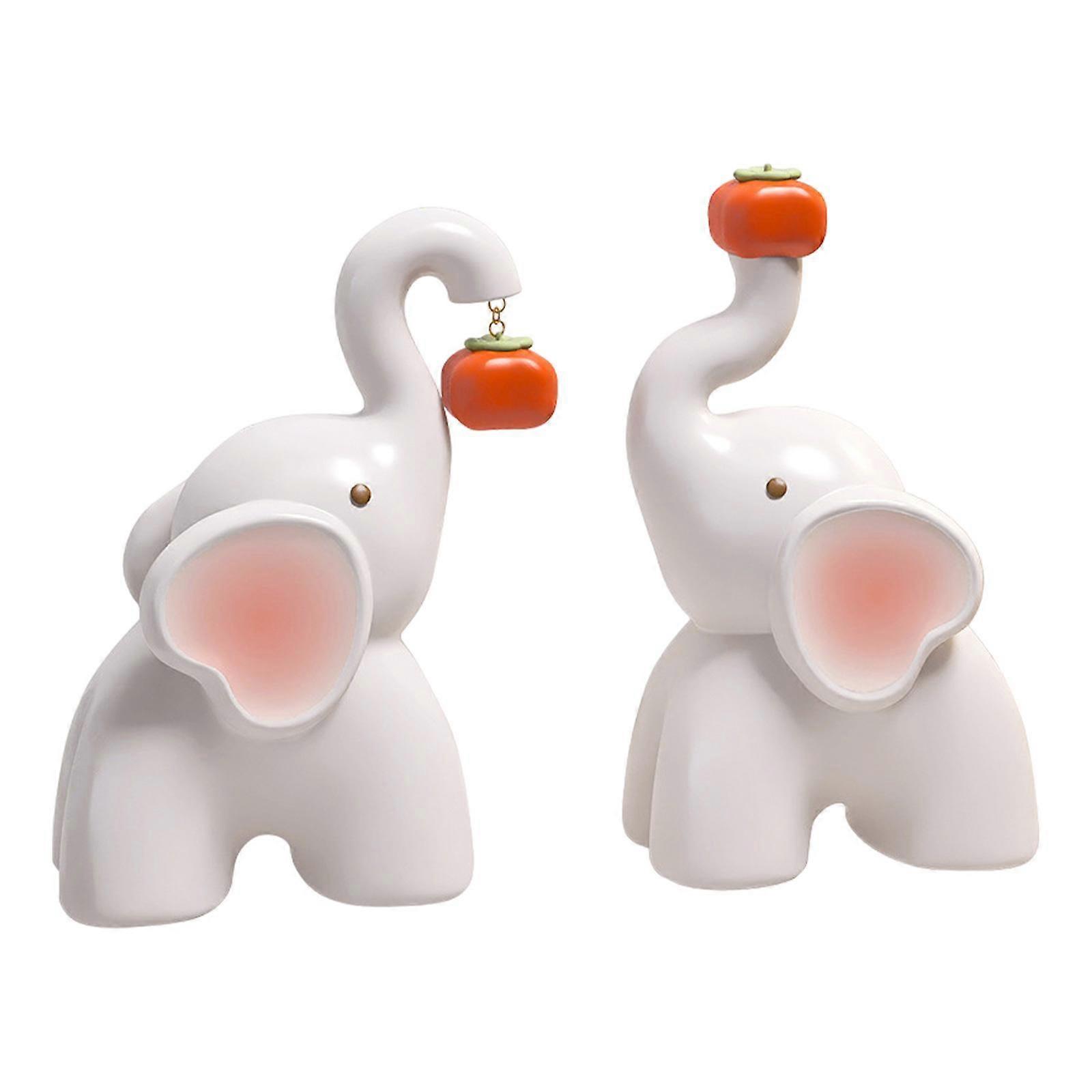 Resin Elephant Statues Collectible Figurines Ornament Cafe Animal Sculptures 2Pcs