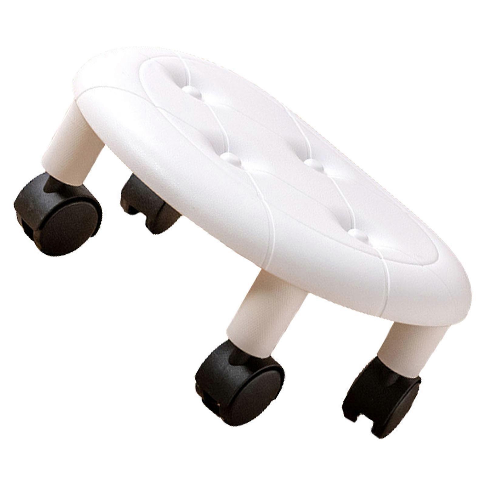 Round Low Rolling Stools Fuax Leather Universal Wheel Small Roller Swivel Stool High Weight Capacity for Home White Item Type: Rolling StoolsMaterial: Plastic, faux leather
