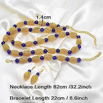 שרשראות חרוזים עבים 82 ס"מ22 ס"מ צמידים ועגילים לנשים אופנתי צבע זהב תכשיטי כדור אפריקה סטים 171706