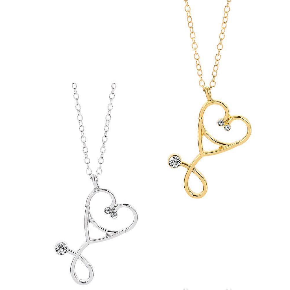 Heart-Shaped Stethoscope Pendant Necklaces For Women 50CM Fashion Accessory 2Pcs Golden And Silver