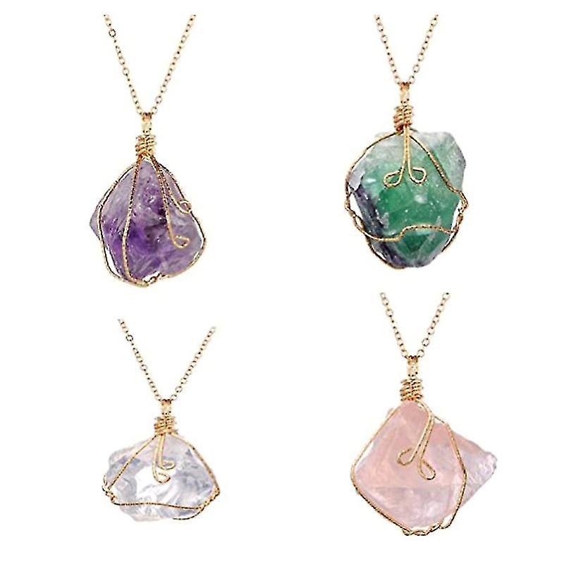 Natural Gemstone Necklace Chakra Stone Pendant Energy Healing Crystal With Chain