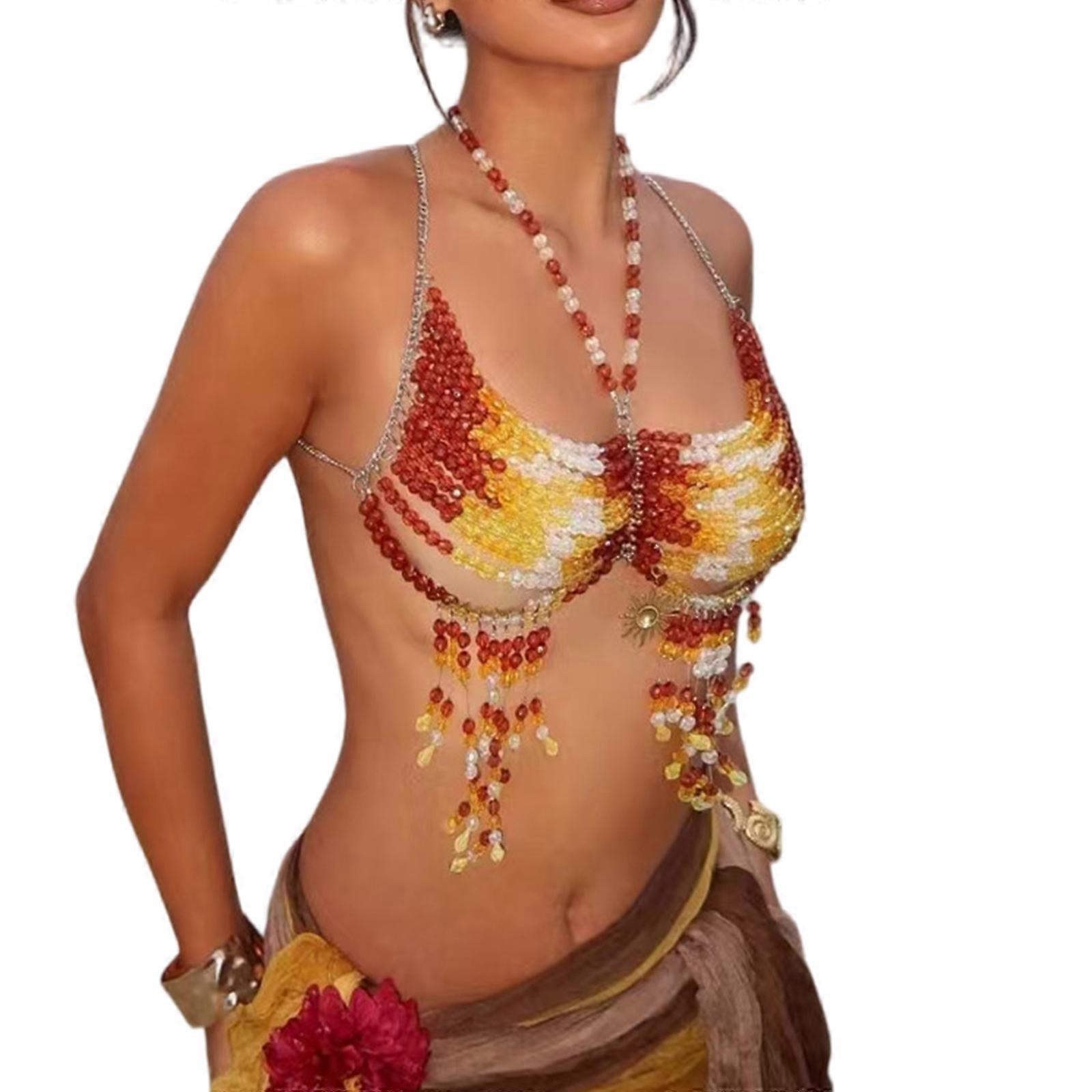 Bohemian Body Chain Bra Pearls Bikinis Chest Chain Necklace Raves Nightclub Body Accessories Jewelry Gifts for Women color Universal code