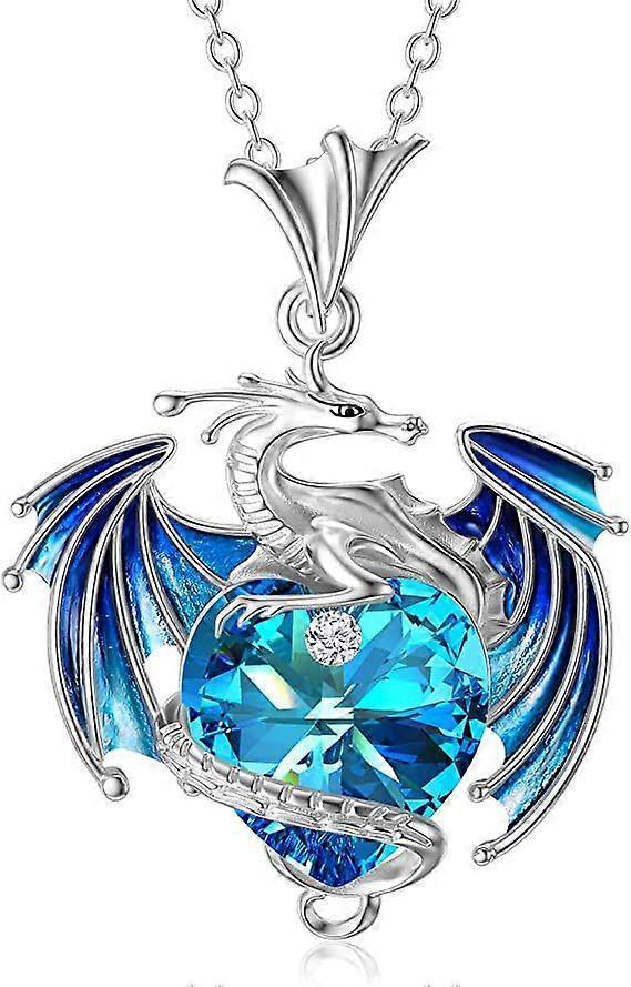 Dragon Necklace Sterling Silver Birthstone Wyvern Necklace With Heart Shaped Crystal Jewelry Gift For Women Girl