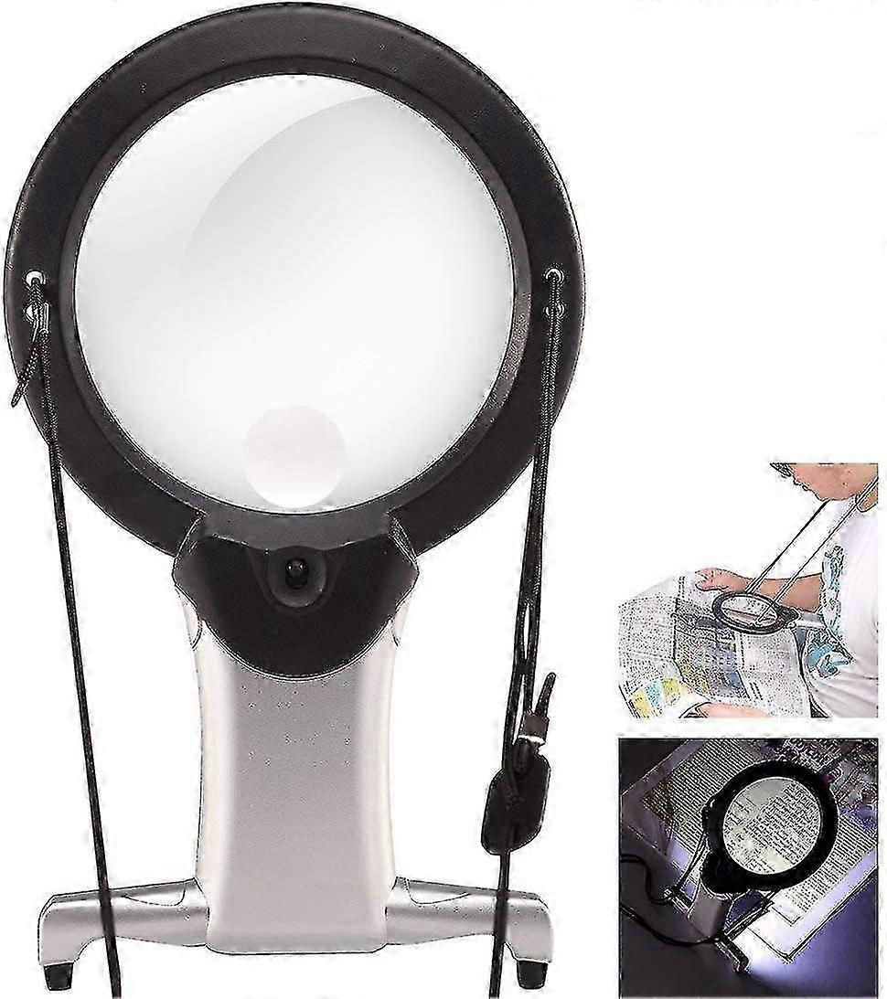 Hands-Free LED Reading Magnifier Necklace 2.5X 6X Magnification for European Market