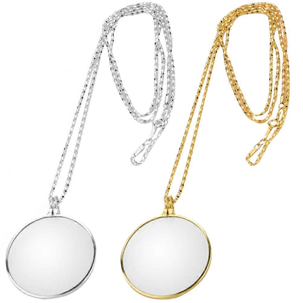 2pcs Magnifier Necklace with Glass Lens for Reading and Visual Aid, Stylish Magnifying Pendant for Elderly, Home and Travel Use