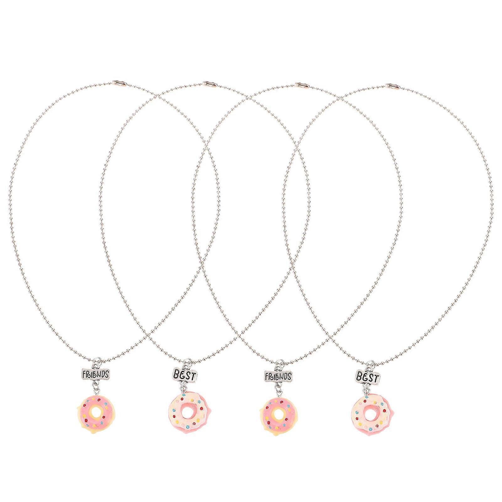 Girls Friendship Necklace Doughnut Pendant for Gift 4Sets Jewelry