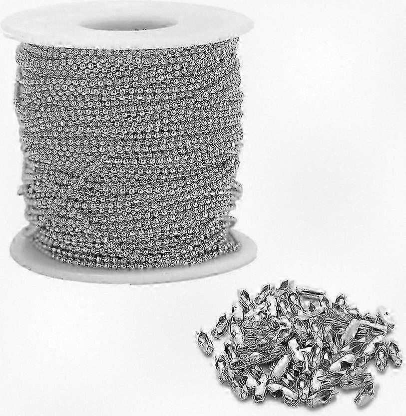 32 feet stainless steel beaded chain with 50 connectors, 2.4mm diameter roller necklace chain, silver fan pull chain for crafts and jewelry
