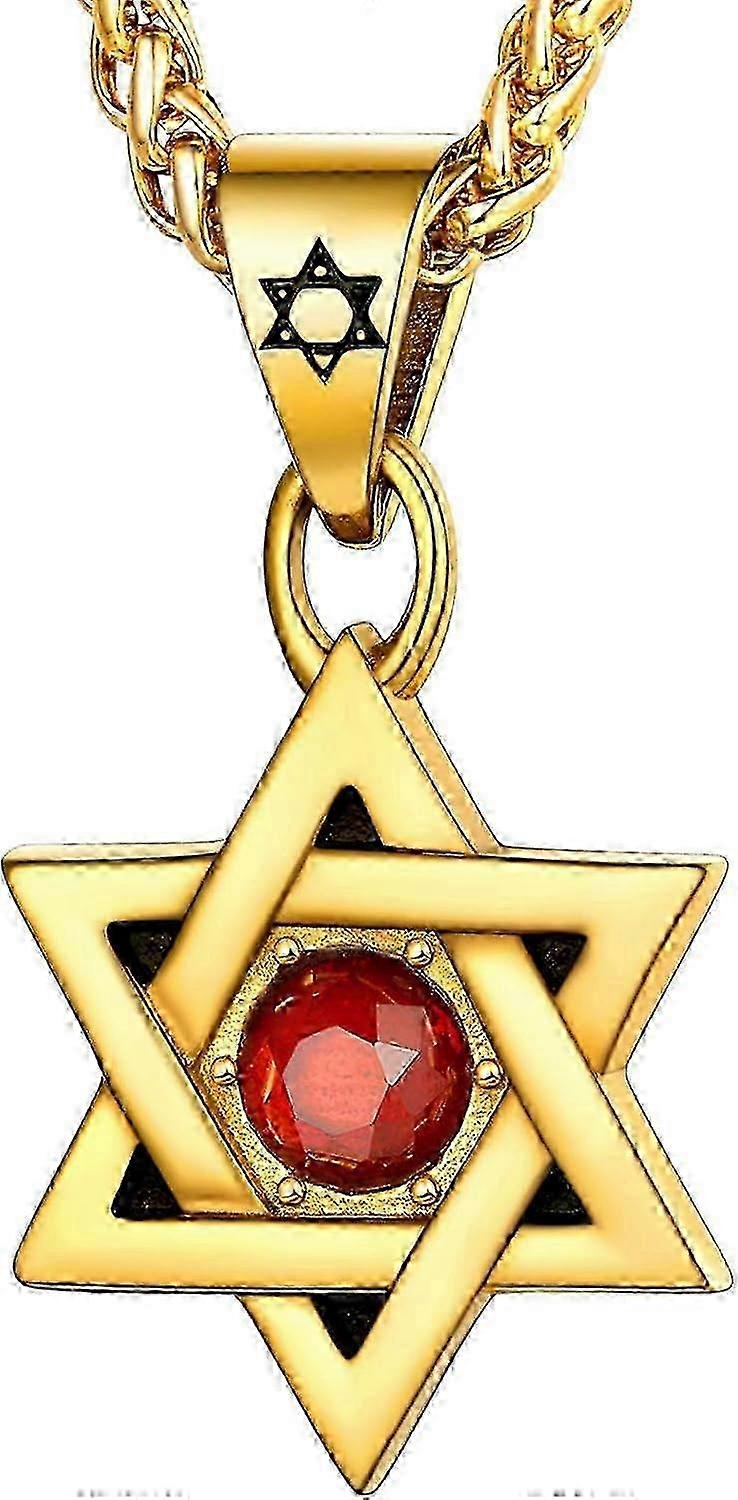Star of David Necklace for Men & Women - Gold/Stainless Steel Jewish Pendant with Cross, Ruby Stone - 22" 24" 26" Israel Necklace 25-26