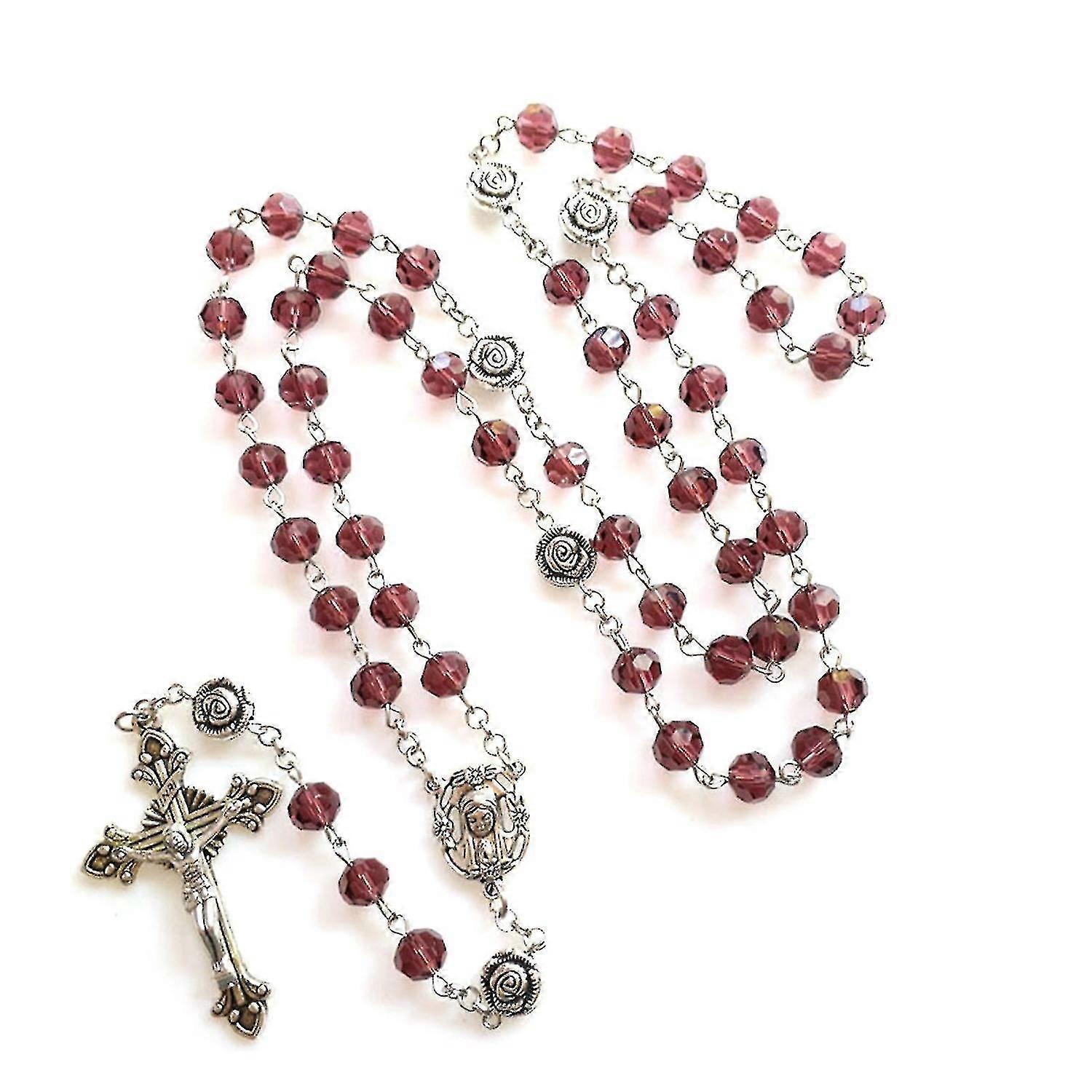 Purple Rosary Necklace Beaded Rosary Necklace Catholic Prayer Beads
