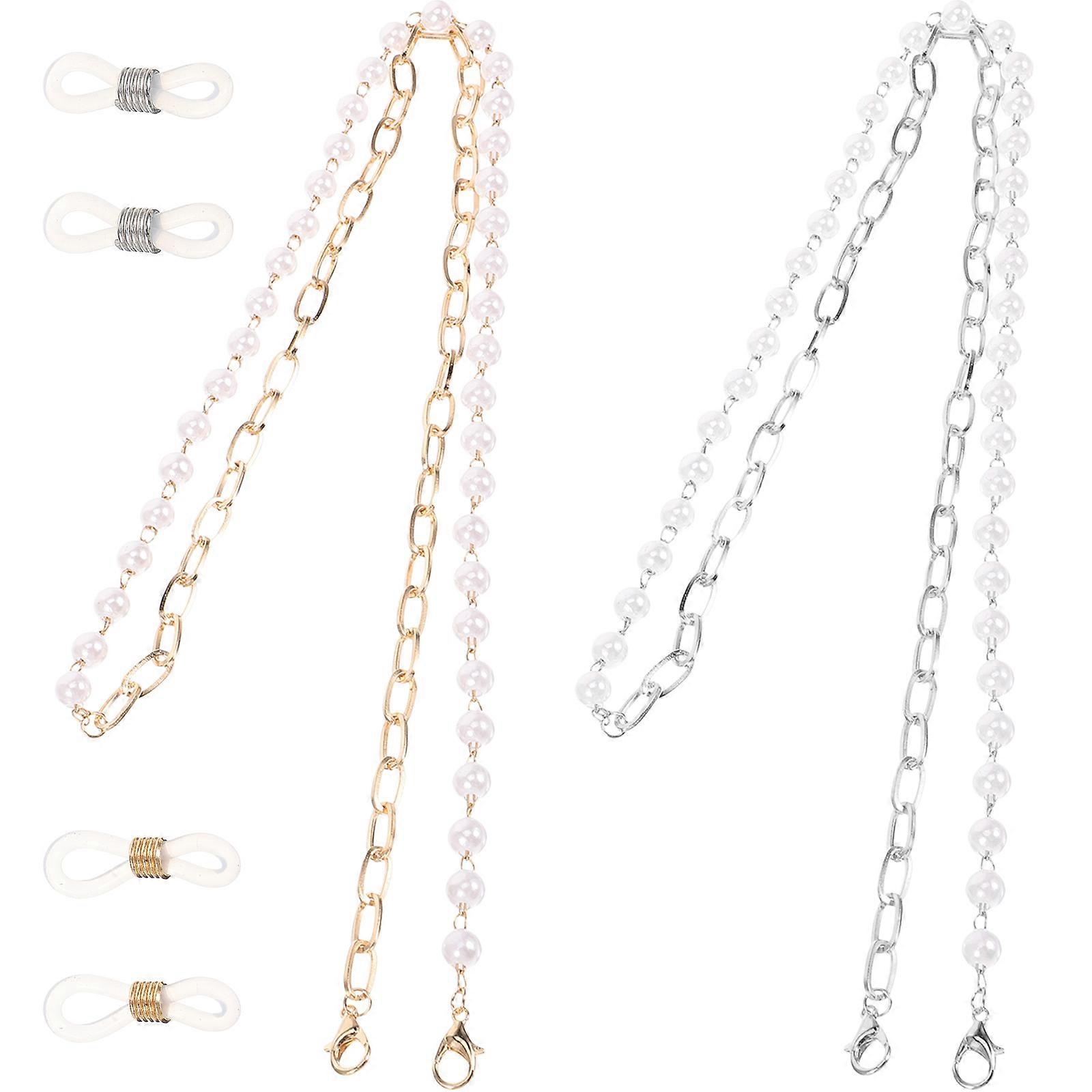Glasses Chain Women Beaded Eyeglass Chains Women Sunglasses Holder Straps Pearl Beaded Silver Glasses Holder 2Pcs