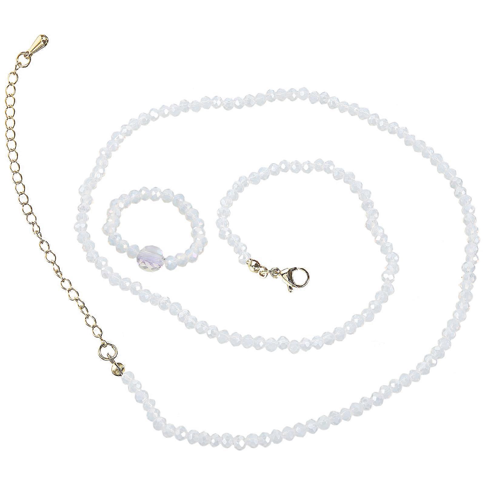 Chain Necklace Women Crystal Beaded Necklace Rings Beaded Chain Circular Ring Jewelry Family Gathering 1Set