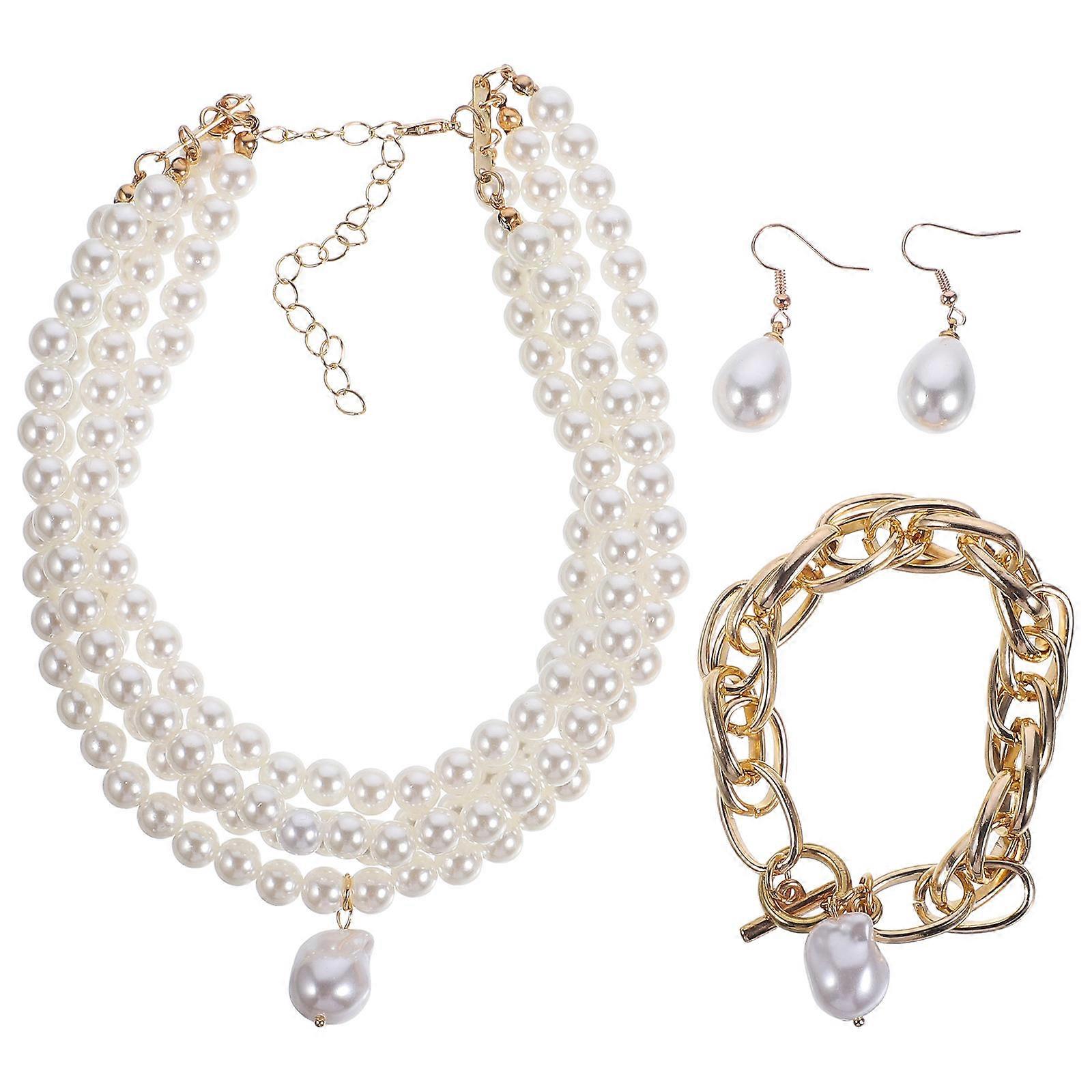 Necklace Earrings Bracelet Set Bridal Accessories Pearl Pendant Earrings For Special Occasions 1Set