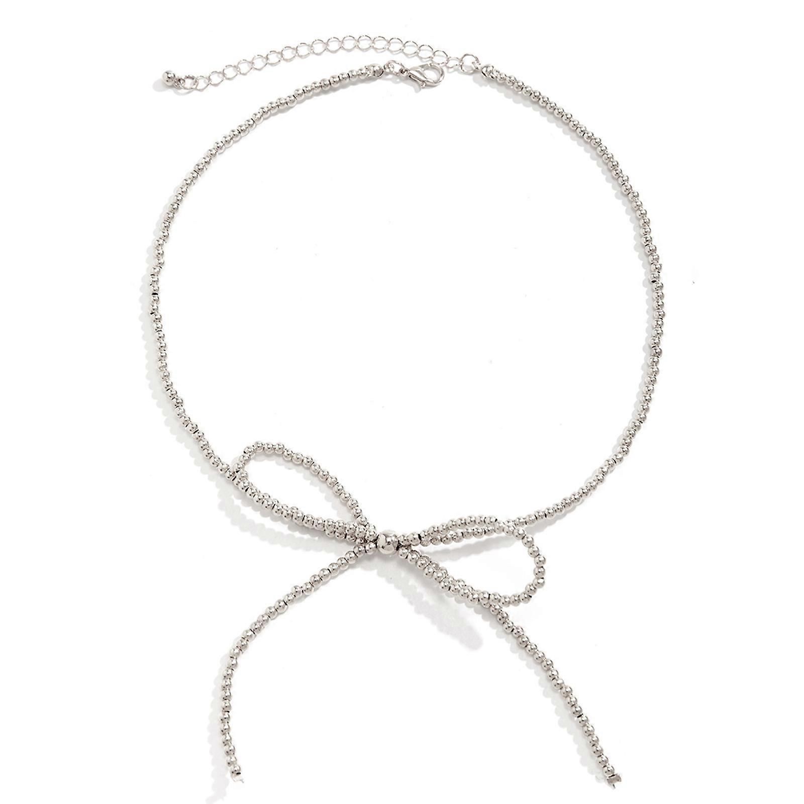 Stylish Bowknot Chain Choker Necklace Durable Jewelry Gift Trendy Beads Bracelet Bowknot Studs Earrings Alloy Material Multicolor
