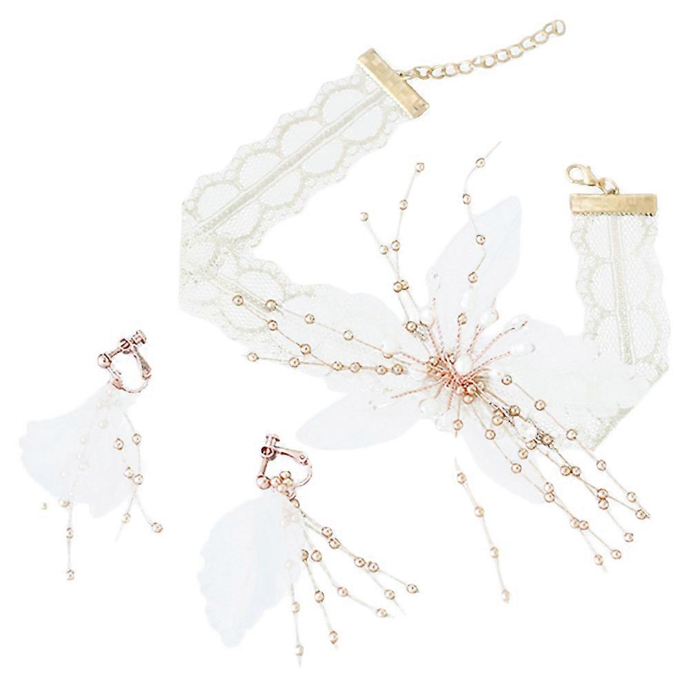 Flower Necklace Fabric Flower Choker for 3Sets Wedding Jewelry Set