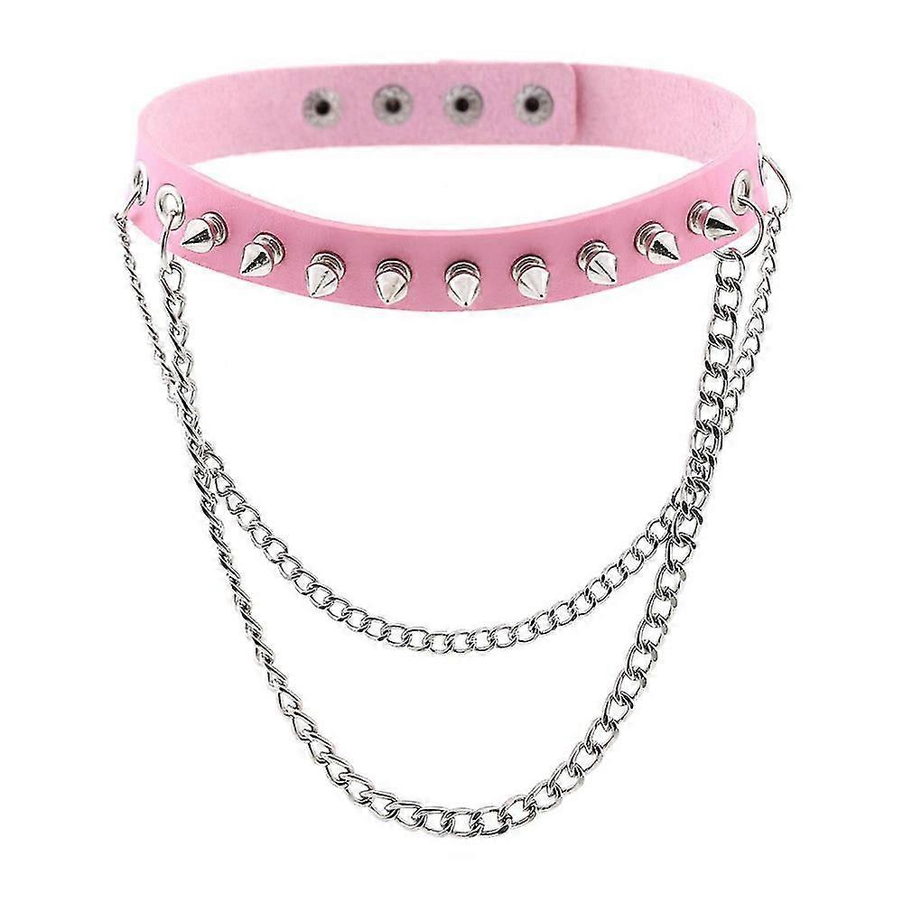 Punk Goth Metal Spike Studded Link Leather Collar Choker Necklace