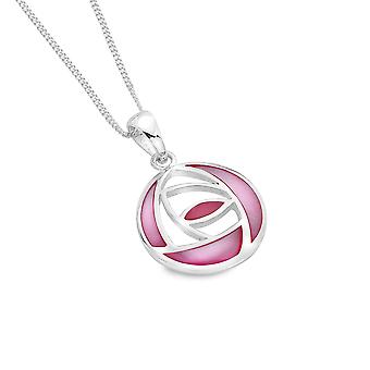 Sterling Silver Pendant Necklace - Charles Rennie Mackintosh Rose + Pink Mother of Pearl