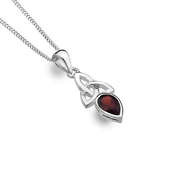 Sterling Silver Pendant Necklace - Celtic Trinity + Garnet