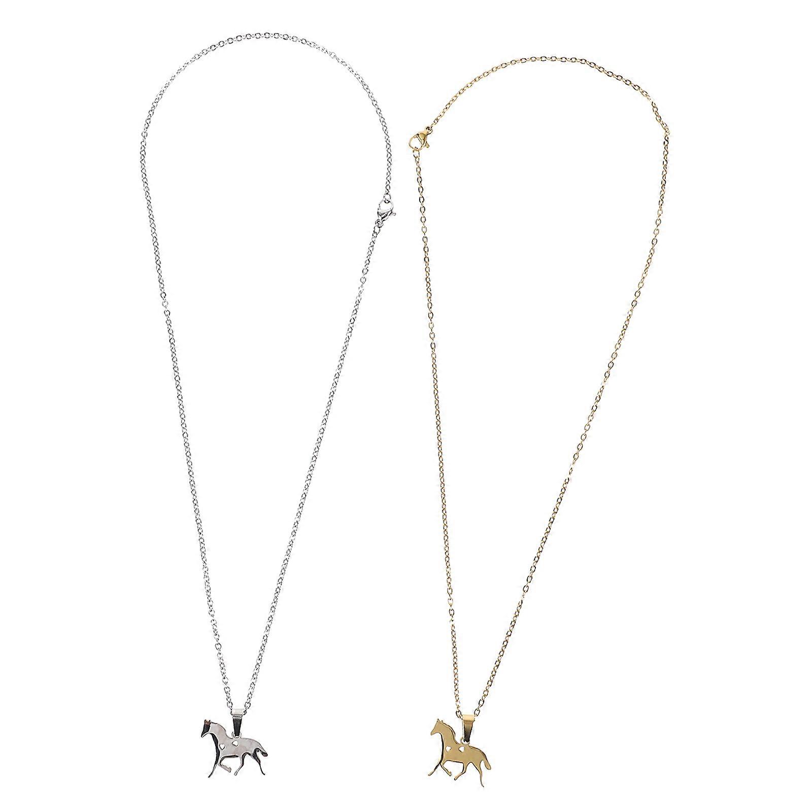 Horse Pendant Necklace in Assorted Colors Made of Stainless Steel for Wearing Elegant Look 2 Pieces